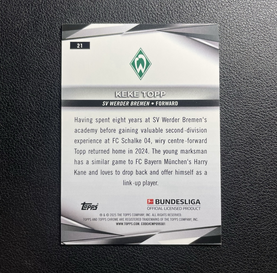 2025 Topps Bundesliga Chrome Keke topp RC 德甲 TC 云达不莱梅 科克 托普 新秀 60/75编 金折 折射 低编 中锋 未来可期 卡品如图 投资收藏必备