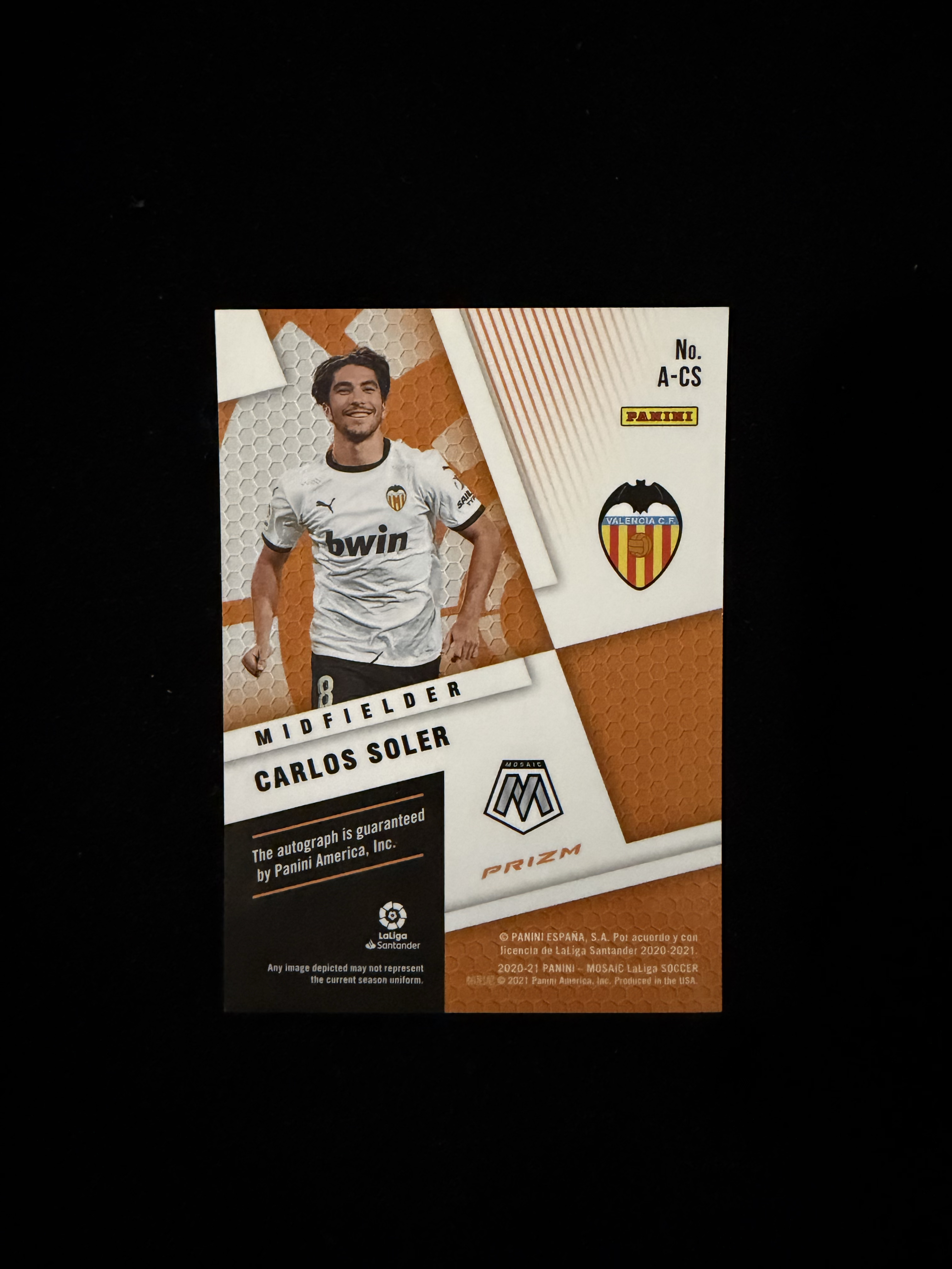 2020-21 Panini Mosaic La Liga and Serie A Carlos Soler 索莱尔 签字 西班牙 Spain 瓦伦西亚 巴黎 Paris 西汉姆联 West Ham