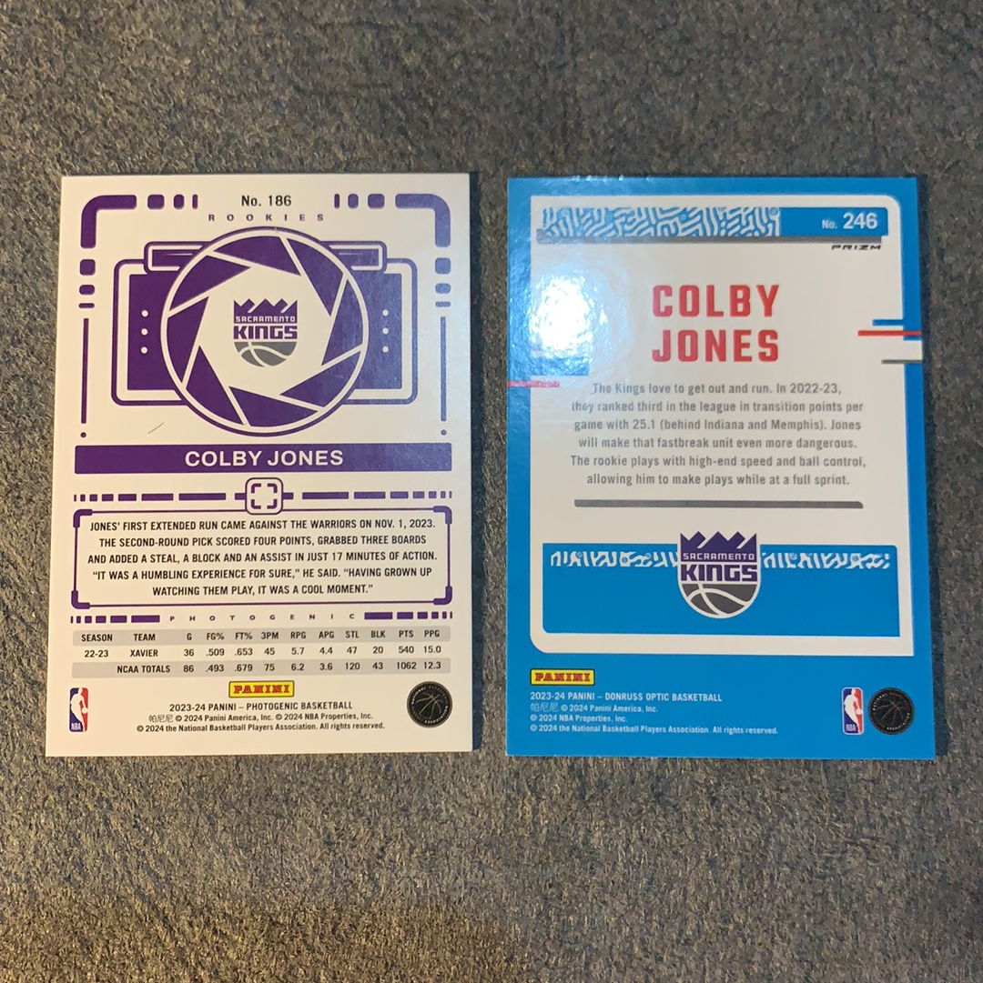 2023-24 Panini Optic Colby Jones RC 新秀 科尔比 琼斯 上镜 optic 碎冰折 /75编 mojo折 国王 奇才新星 潜力股 投资必备 库利巴利队友 打包不保品