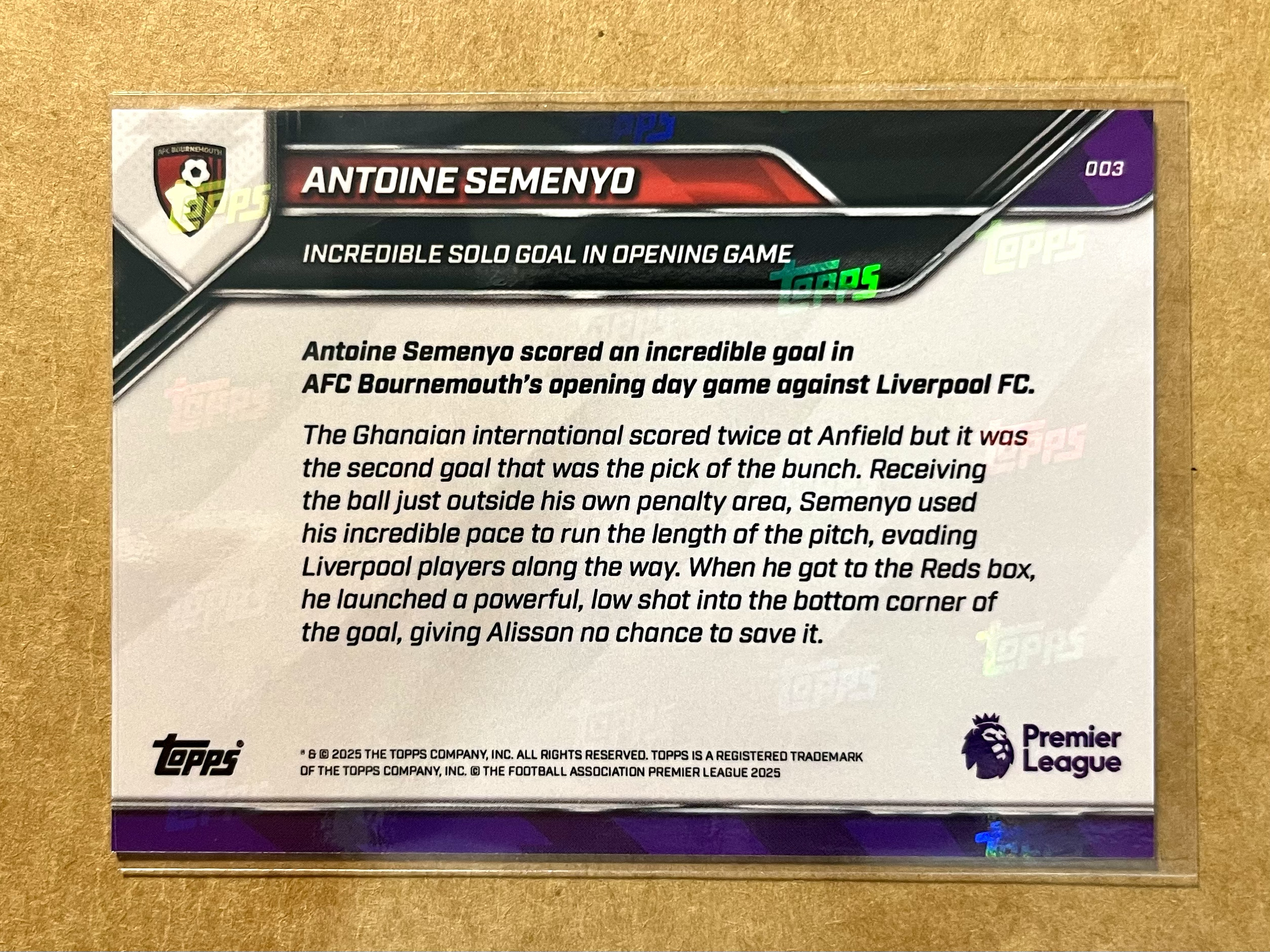 2025 Topps 【蓝矿】 Antoine Semenyo 安东尼·塞门约 Topps now系列 橙折4/25编 英超 伯恩茅斯 超强的个人能力点燃安菲尔德!