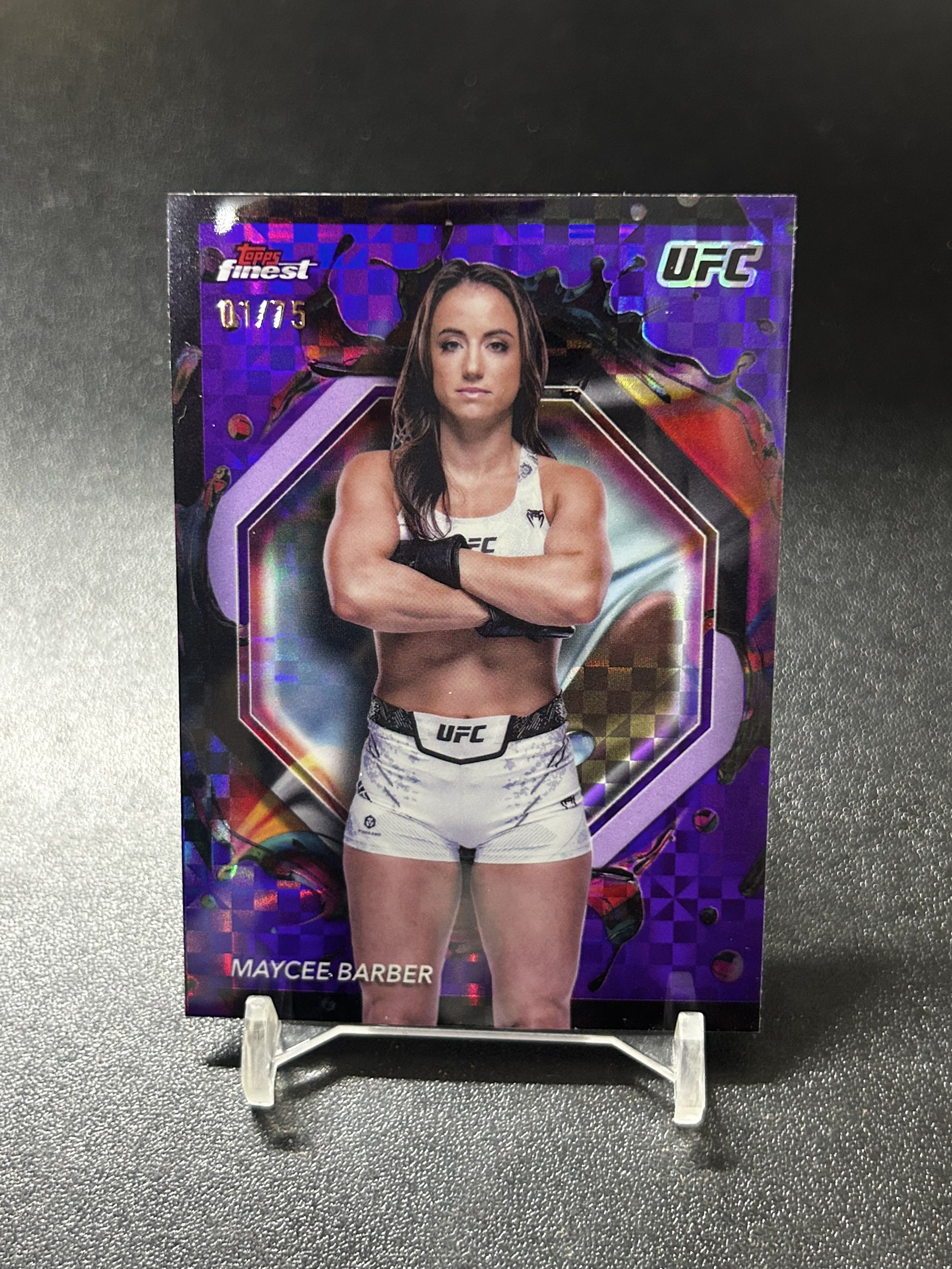 【浩行拍卖 截标预付82%】2024 topps finest ufc maycee barber 梅塞 巴伯 紫棋盘折 折射 1/75编 首编 瑕疵看图 专收必备「纸样」1106B02張