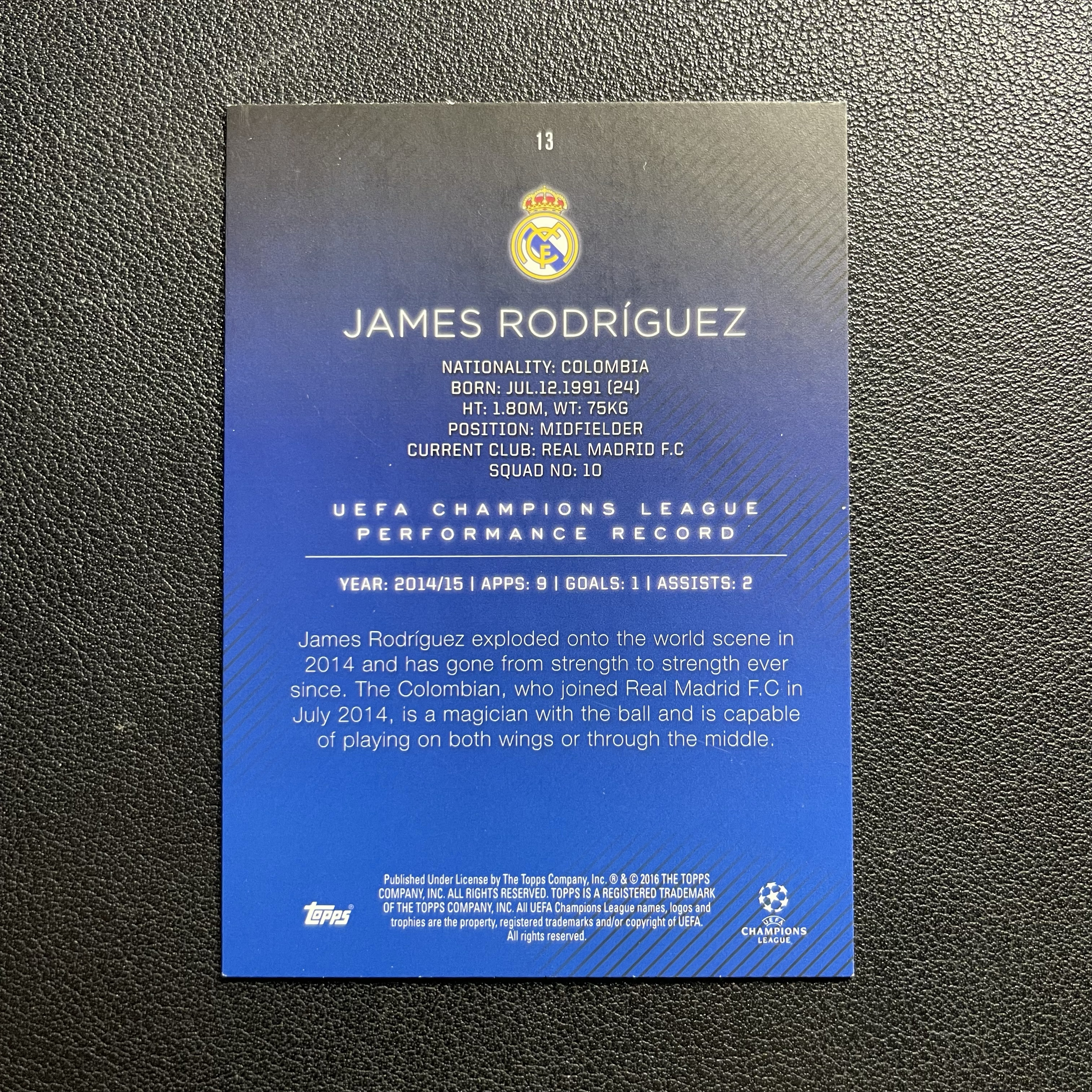 2016 Topps Chrome James Rodríguez 欧冠 皇马 J罗 哥伦比亚 老卡 稀少 投资凑套收藏 卡品如图