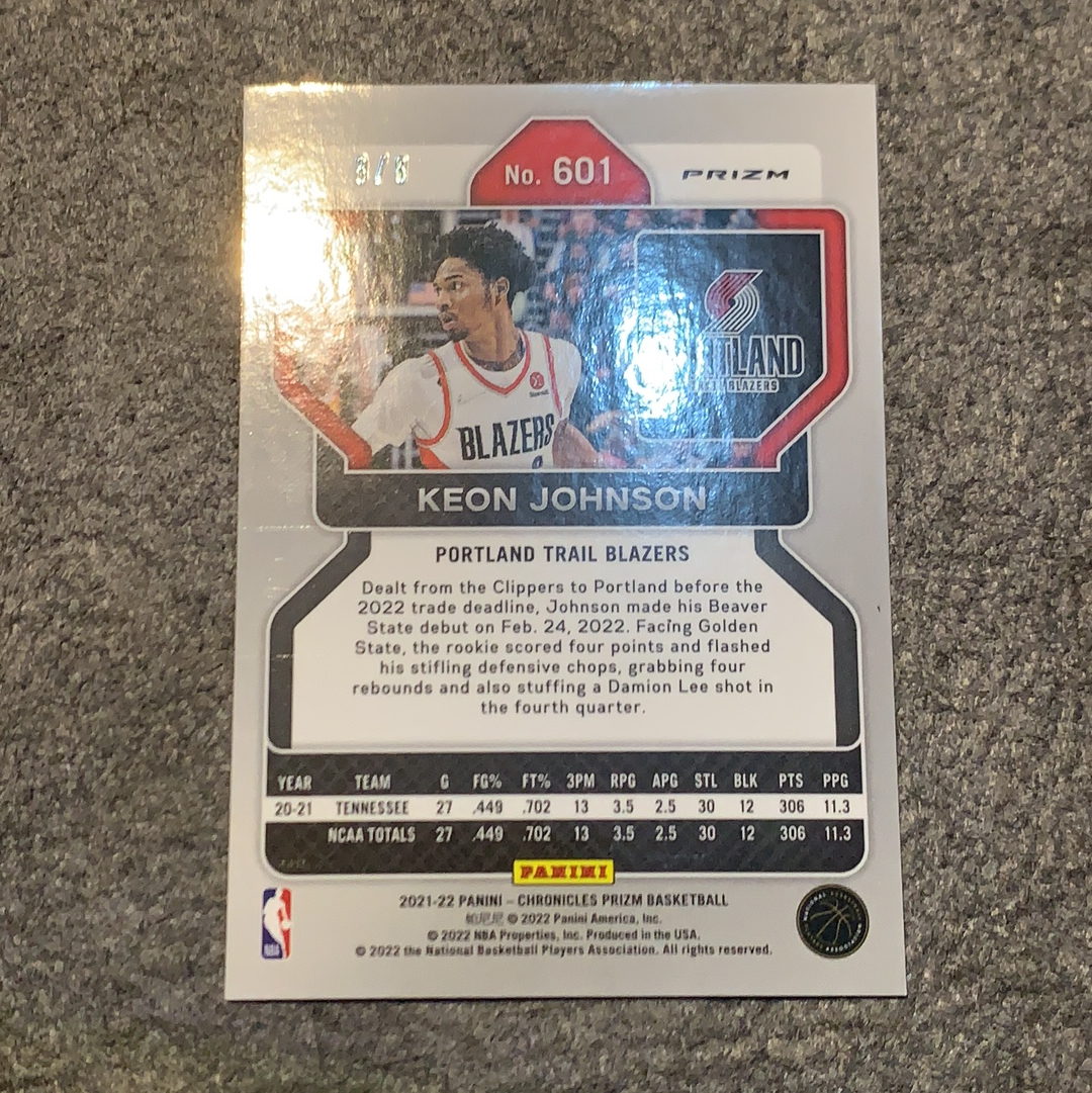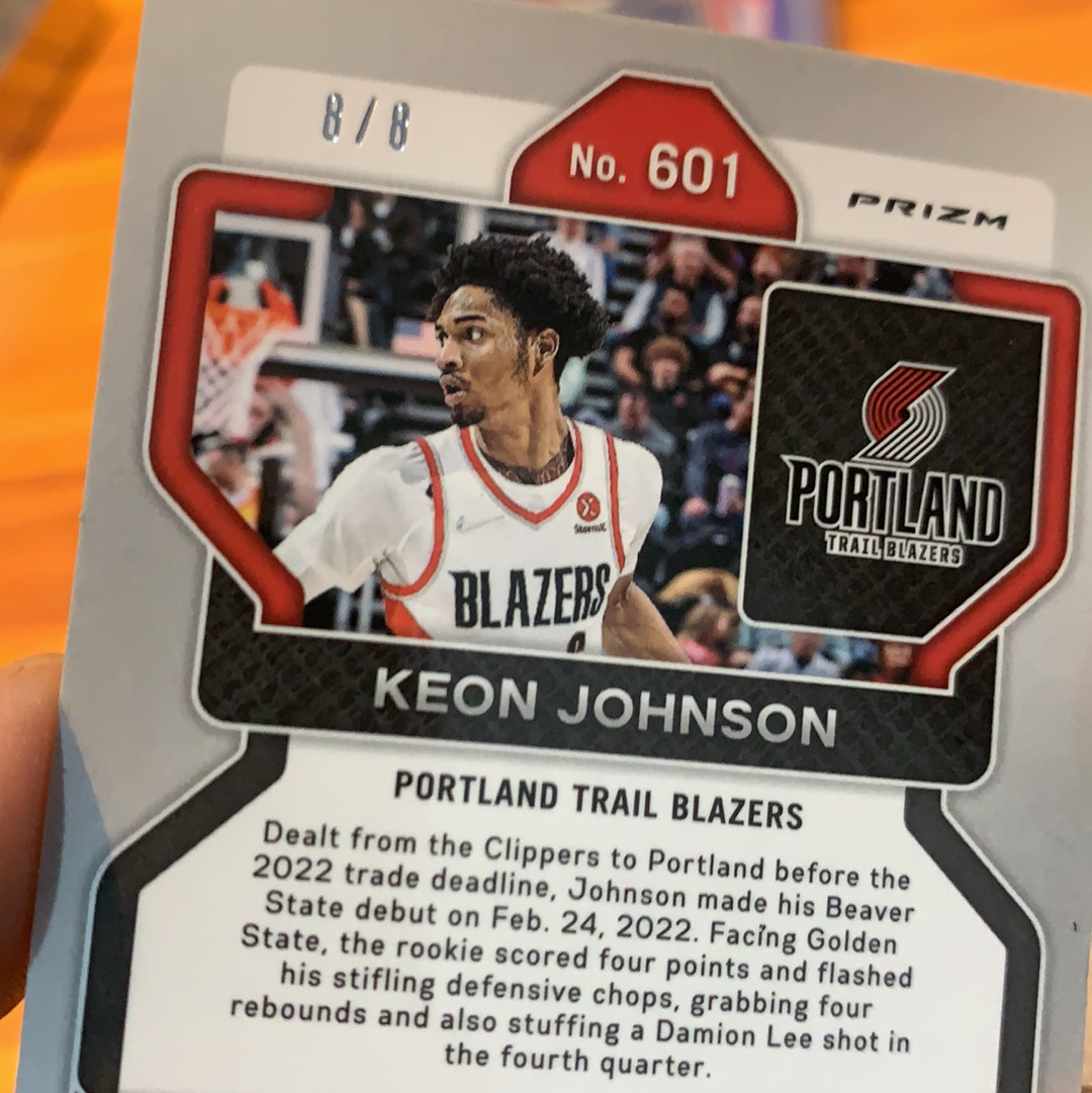 2021-22 Panini Prizm Keon Johnson RC 新秀 肯昂 约翰逊 基恩约翰逊 信封 hyper折 龙鳞折 8/8编 尾编1/1 开拓者 篮网新星 阿夫迪亚前队友 卡品如图