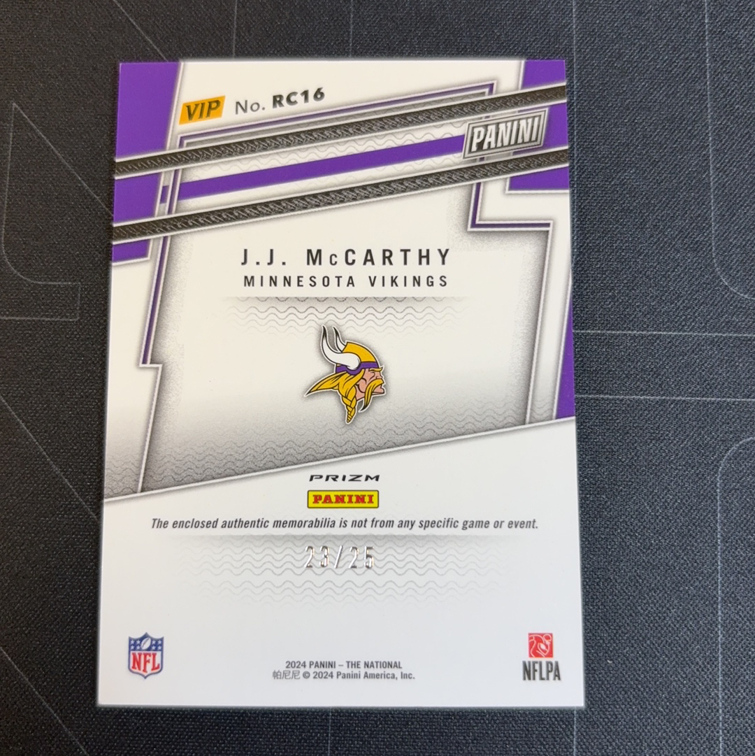 【风速狗】2024 PANINI NSCC PRIZM 国展包 vip NFL 橄榄球 维京人 J.J. McCarthy JJ 麦卡锡 23/25编 球衣 物料 hyper 折射 超低编 轻印 s
