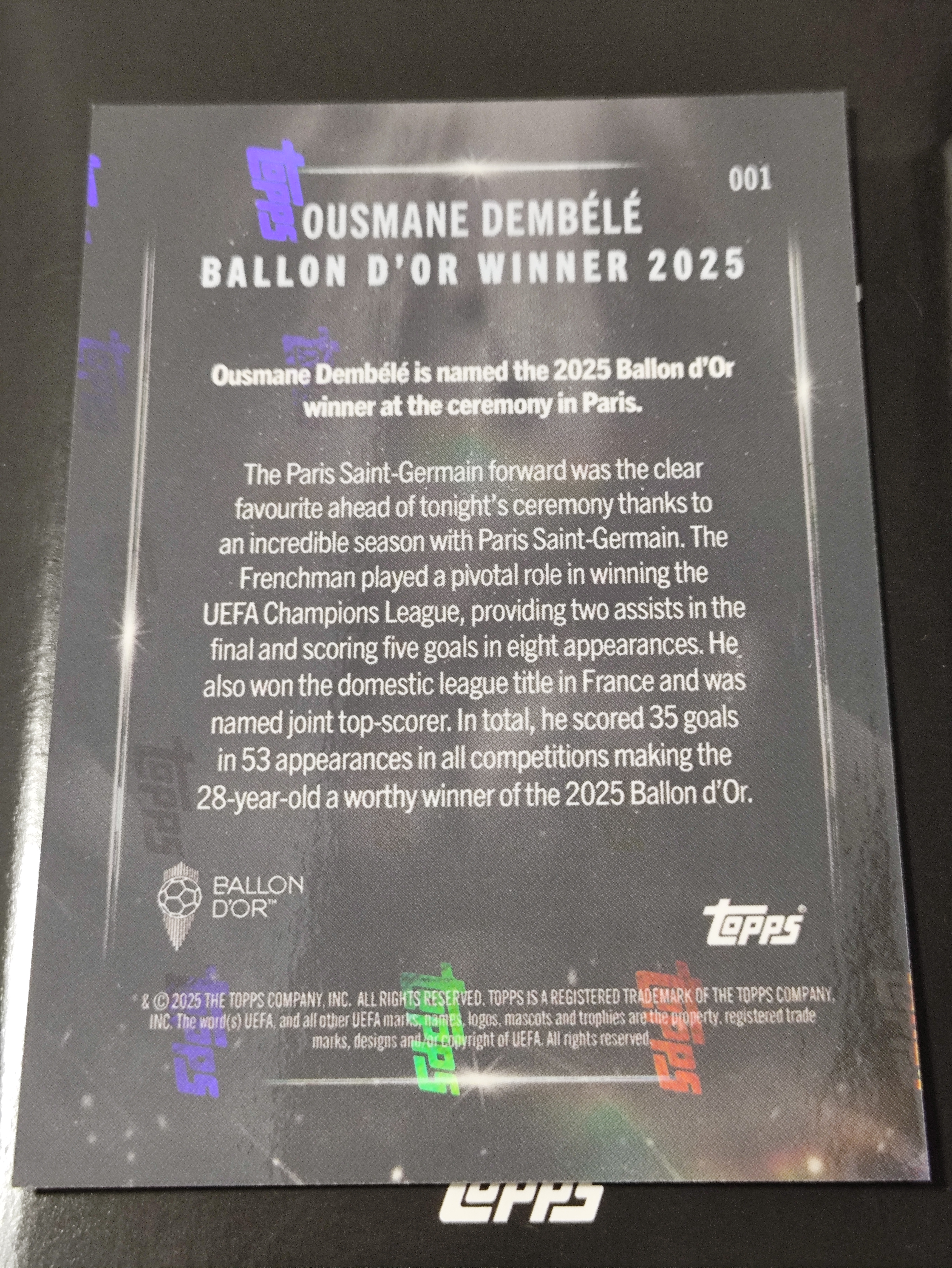 2025 Topps now Ousmane Dembélé 法甲 大巴黎 巴黎圣日耳曼 法国前锋 登贝莱 金球奖 捧杯纪念