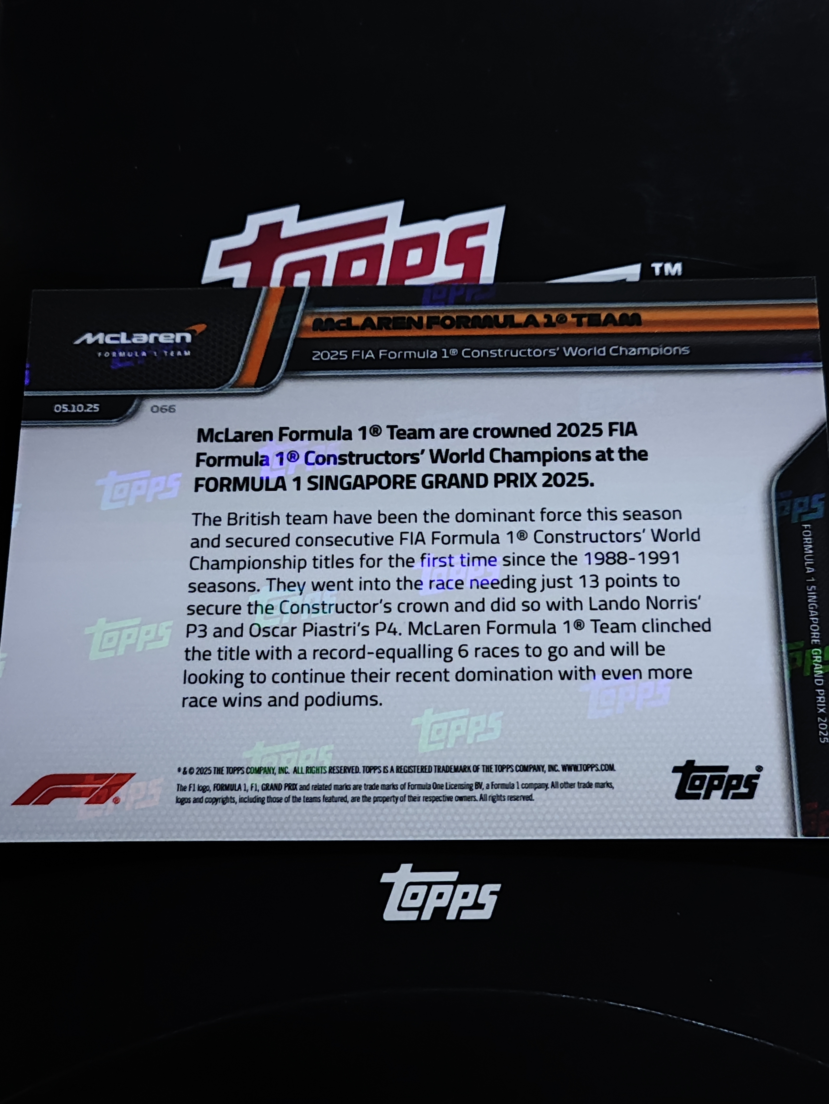 2025 Topps now Lando Norris F1 新加坡大奖赛 迈凯伦 车队冠军 兰多 诺里斯 皮亚斯特里 庆祝夺冠 世界冠军