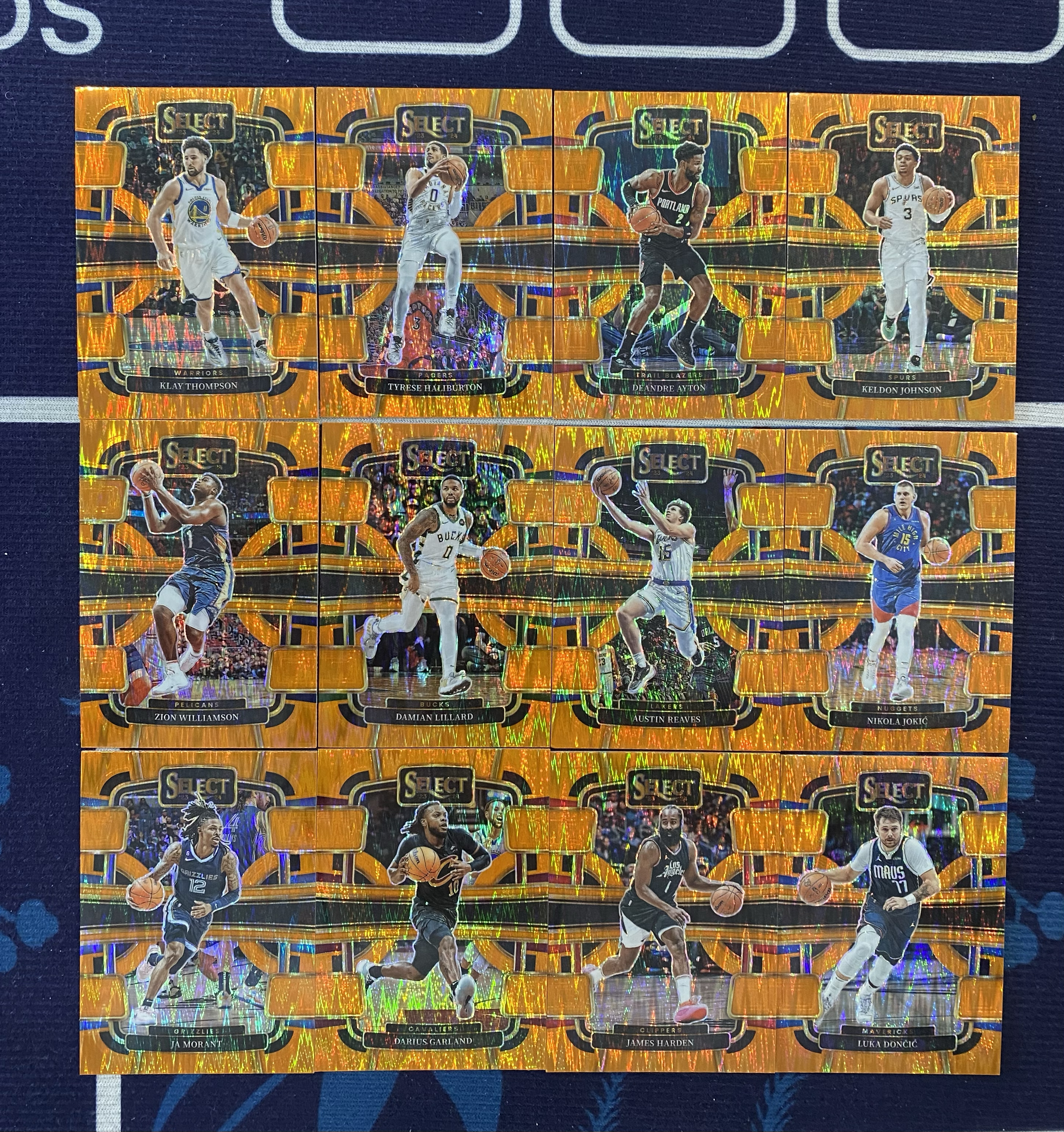 【不累计】2023-24 Panini Select 12张 橙瀑布折射 base 东契奇 克莱汤普森 哈里伯顿 艾顿 凯尔登约翰逊 锡安威廉姆斯 利拉德 小里夫斯 约基奇 莫兰特 加兰 詹姆斯哈登