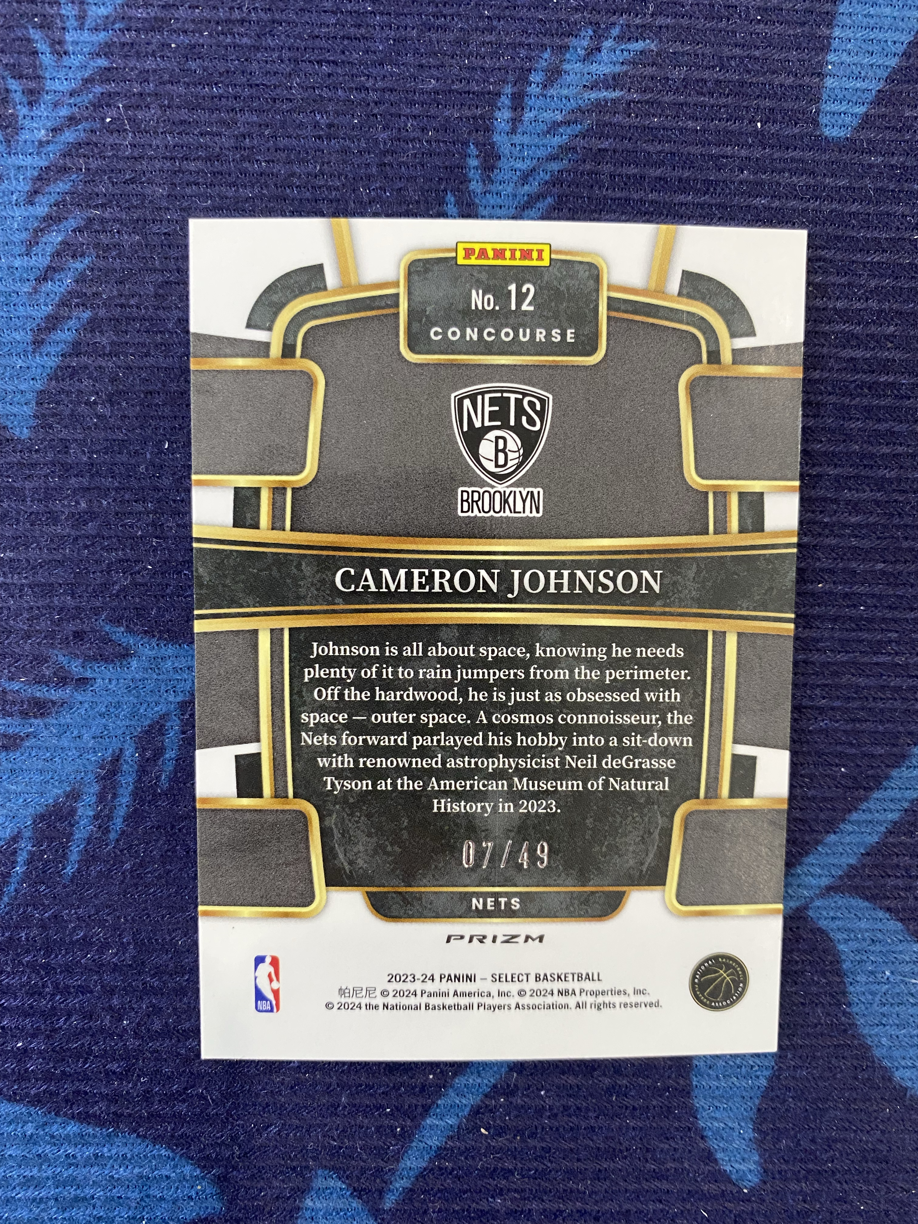 【不累计】2023-24 Panini Select 篮网 卡梅隆 约翰逊 黄忠 07/49编 绿白粉折射 base Cameron Johnson