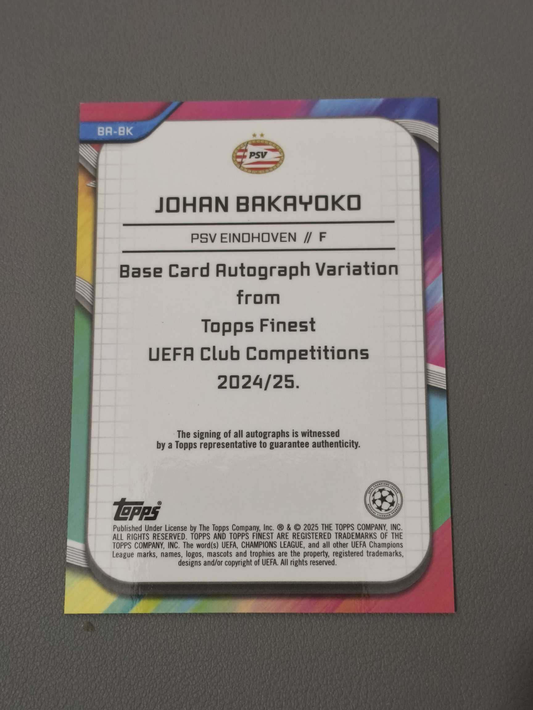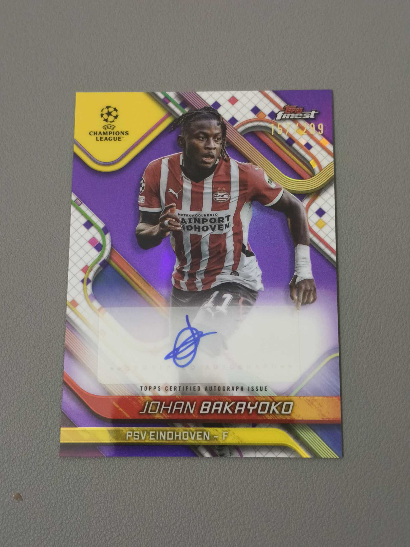 2024-25 Topps Finest Johan Bakayoko 欧冠 埃因霍温 约翰 巴卡约科 签字 紫折 299编