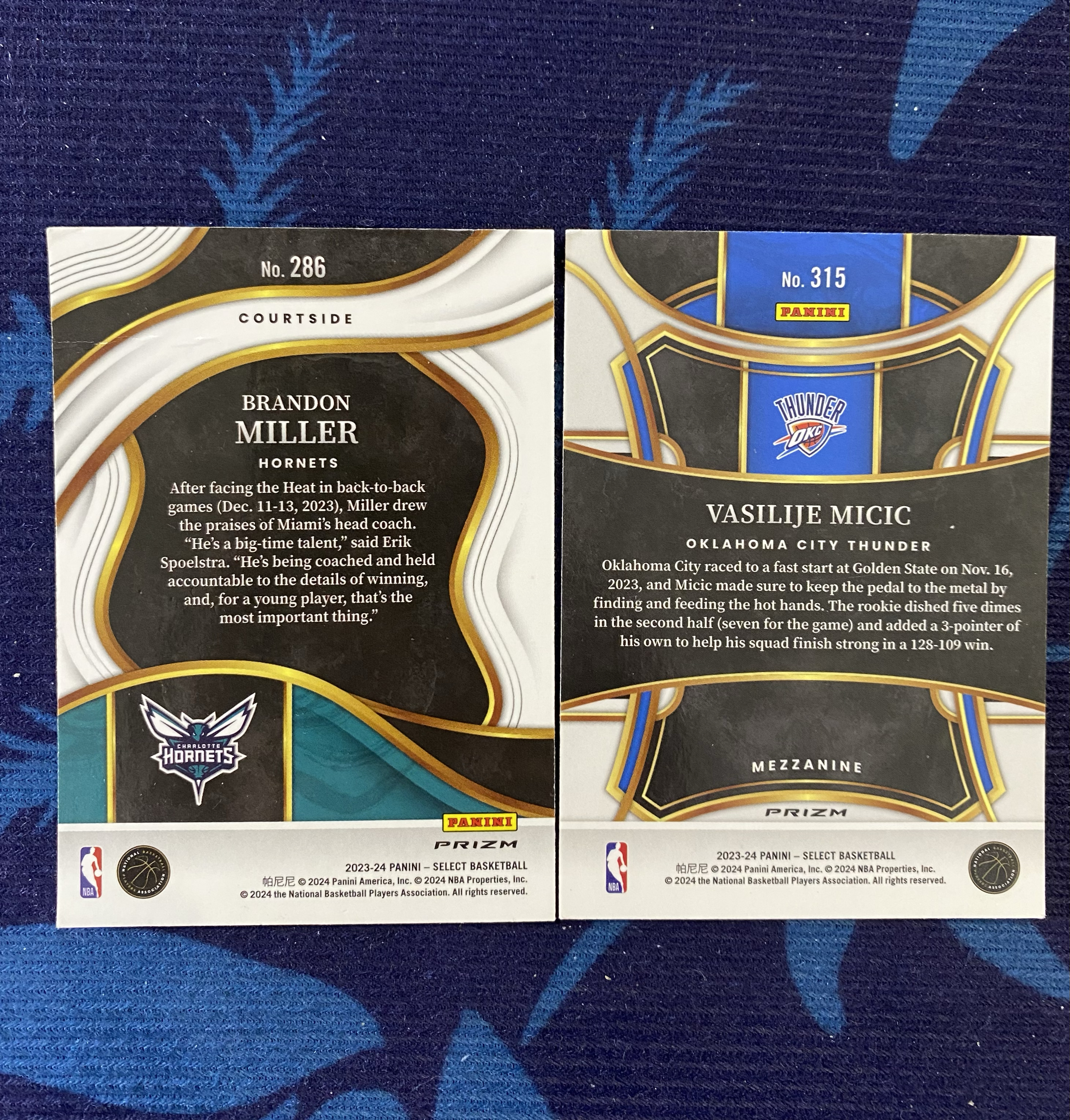 【不累计】2023-24 Panini Select 黄蜂雷霆 布兰登米勒 米奇齐 两张 RC新秀 橙瀑布折射 三级四级 base 打包