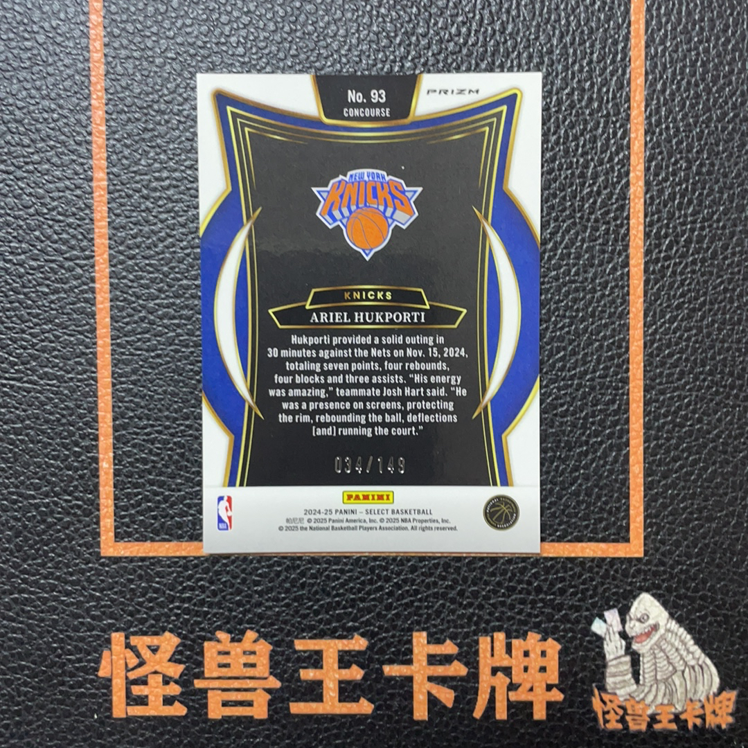 (怪兽拍卖) GSW-F75 2024-25 Panini Select Ariel Hukporti RC 尼克斯 新秀 阿里尔 胡克波尔蒂 149编 白折
