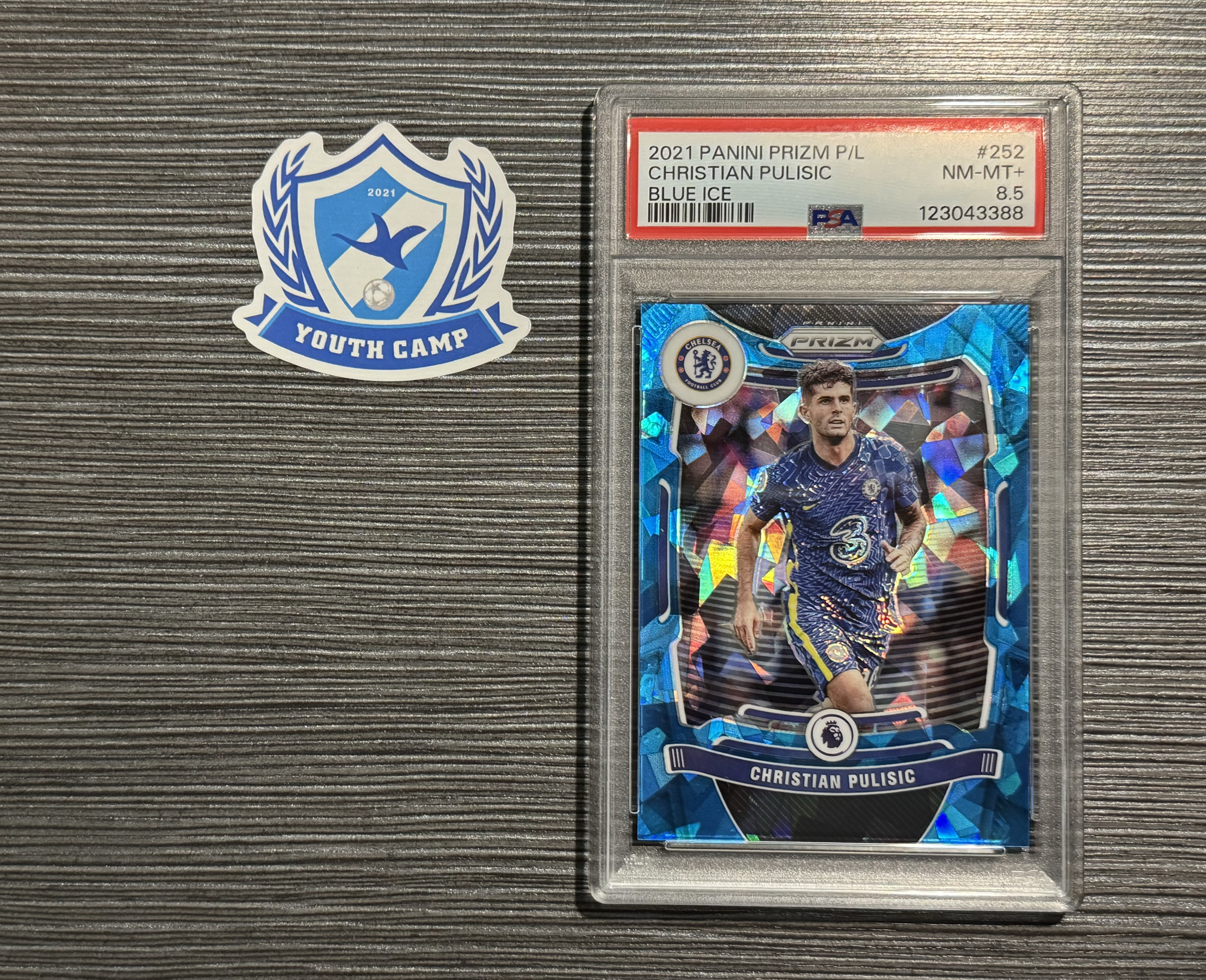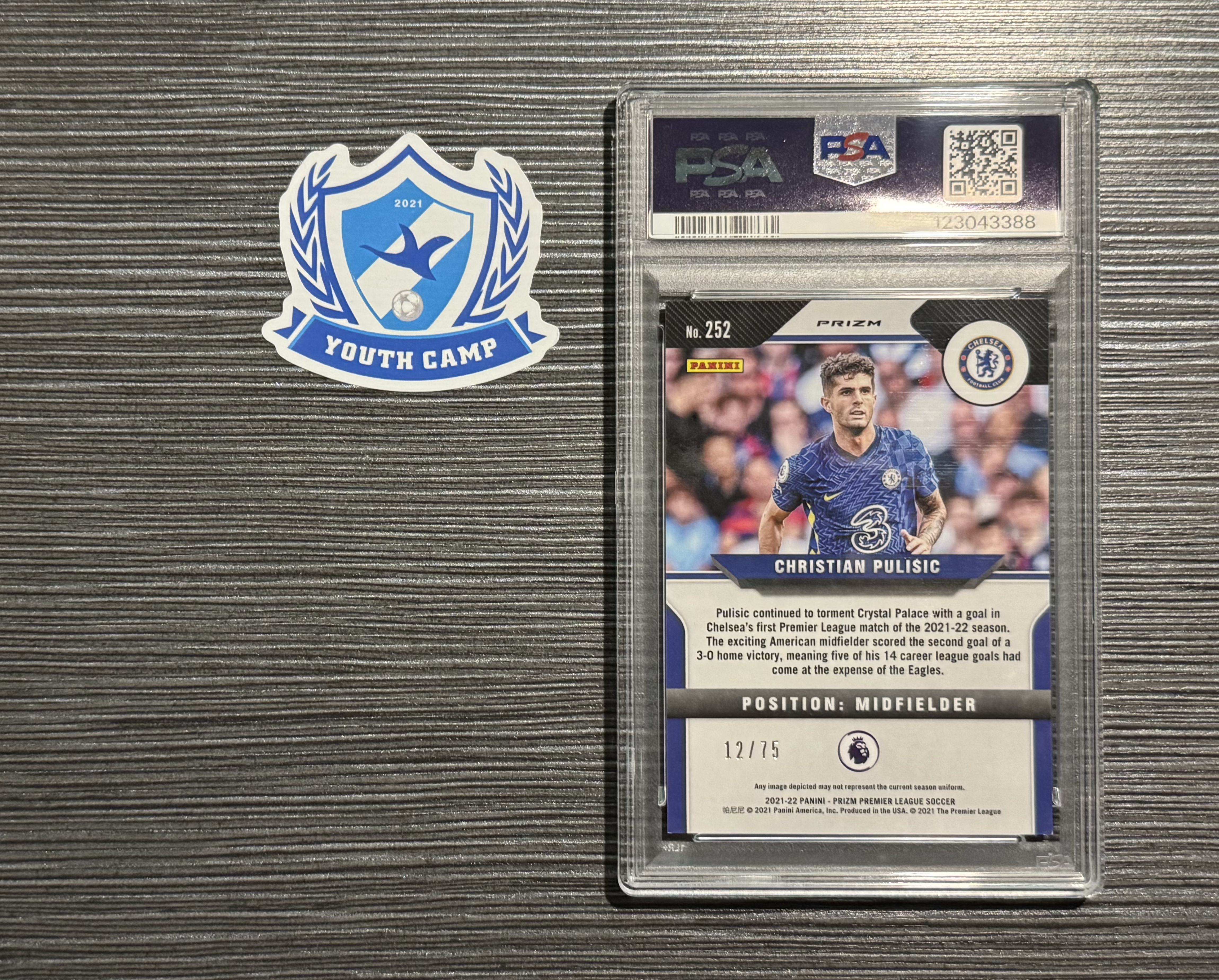2021-22 Panini Prizm Christian Pulisic 帕尼尼 英超PZ 普利西奇 12/75编 蓝碎冰 PSA8.5 专收必备 凑套必备 切尔西 米兰 恩佐 帕尔默 莱奥 陈哥