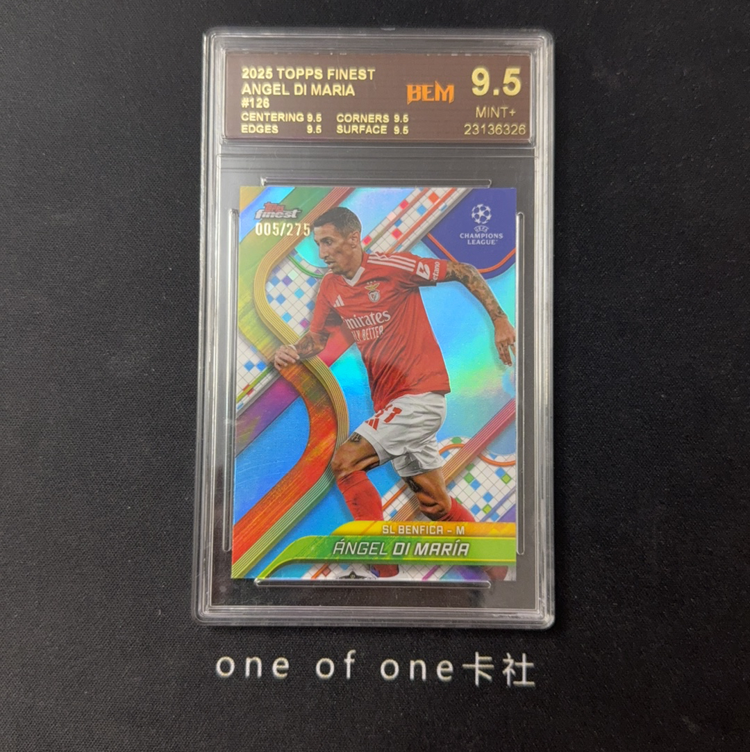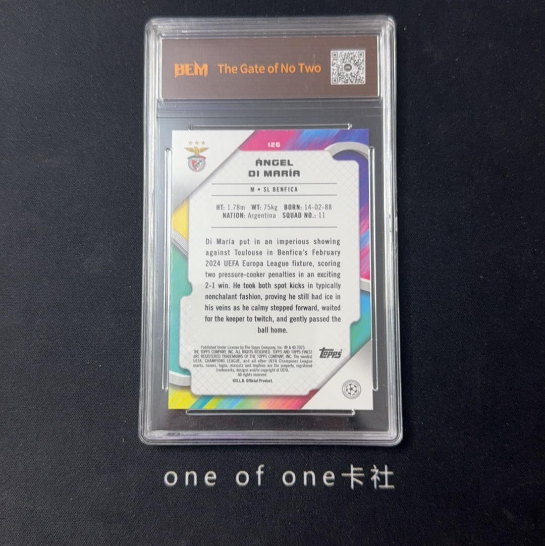 2025 Topps Finest Ángel Di María 本菲卡 皇马 阿根廷 天使 迪玛利亚 天蓝折 275编 BEM评级 9.5分 卡品如图