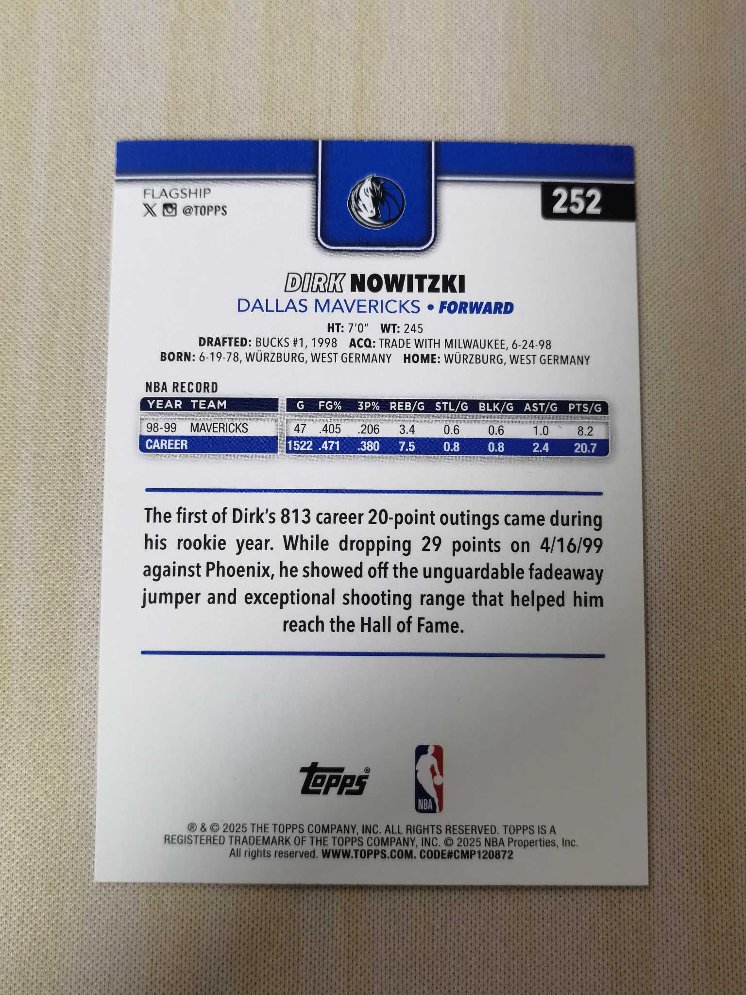 2025 Topps flagship Dirk Nowitzki 德克 诺维斯基!独行侠历史第一人,单核夺冠!Topps元年250编正紫折,选图青涩帅气!eBay价高!可搏psa高分!专收投资俱佳!