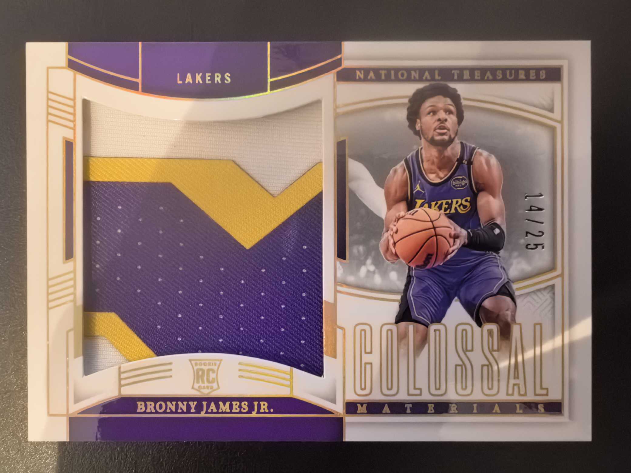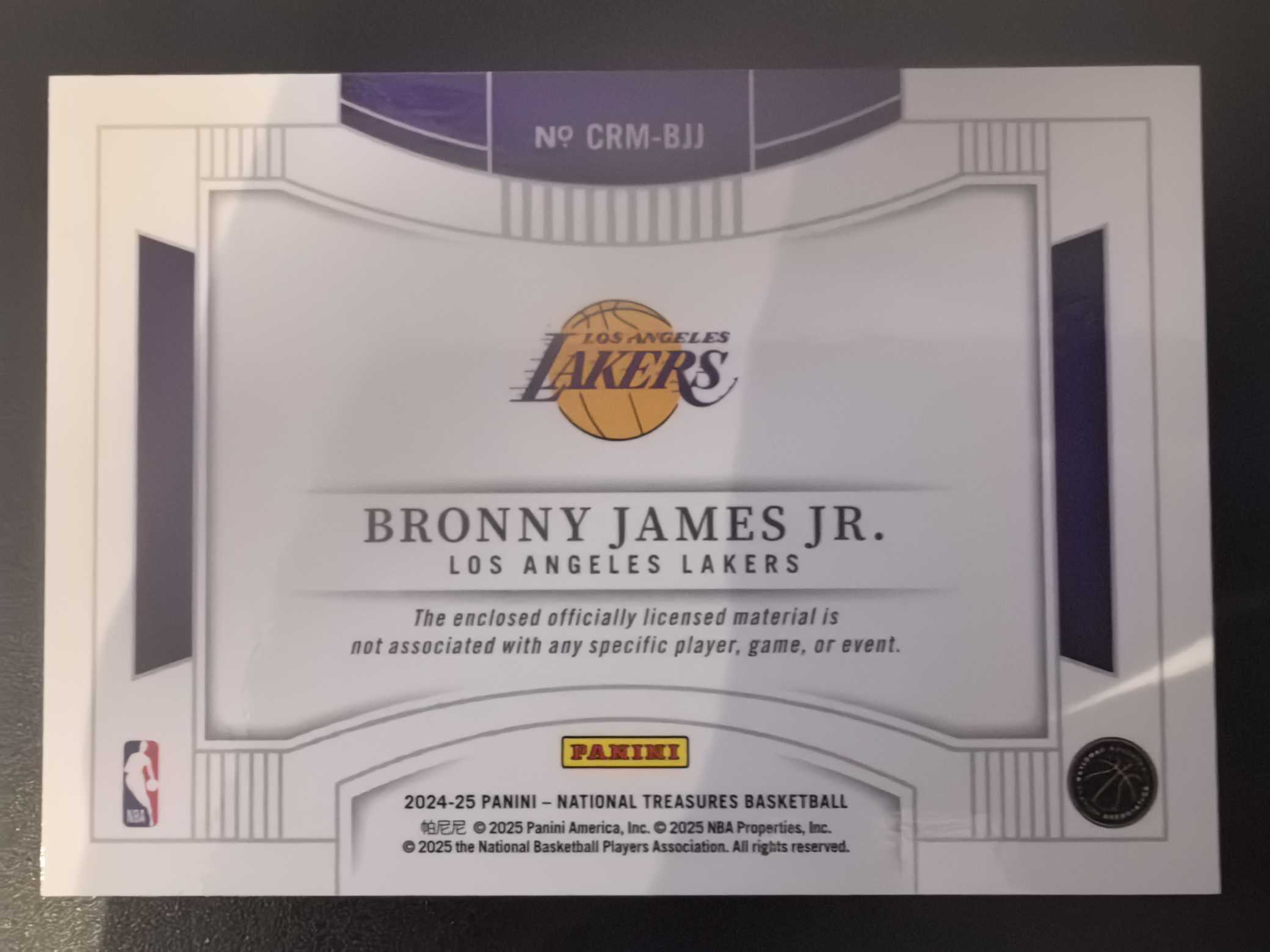 2024-25 Panini National Treasures Bronny James RC 25编湖人新秀太子布朗尼詹姆斯大窗物料特卡,暴力切割,新秀无签字版权只有无聊,卡品如图,收藏佳品