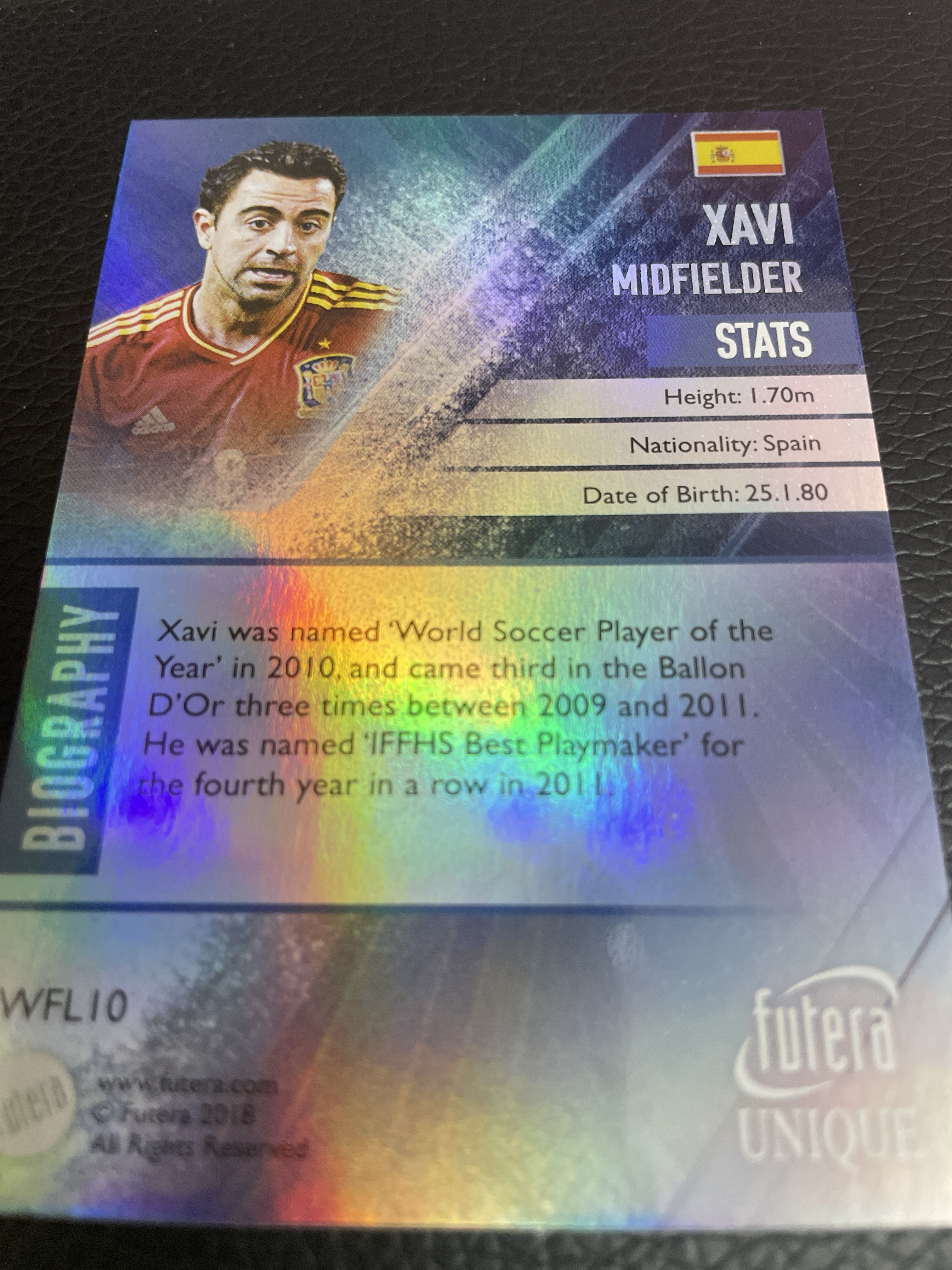 2018 futera unique福特拉 哈维 西班牙国家队 巴萨中场大师 传奇 梦巴萨 世界足球传奇 银卡 欧冠 世界杯冠军 卡品如图 老卡会有轻微镶嵌印痕 介意勿拍