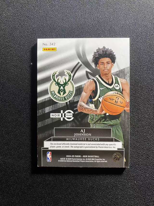 2024-25 Panini Noir AJ Johnson RC 陈氏拍卖 大热 新秀 aj约翰逊 诺尔 雄鹿 球衣衣料 RPA 签字 卡签 25编 凑套专收必备 吕布1114