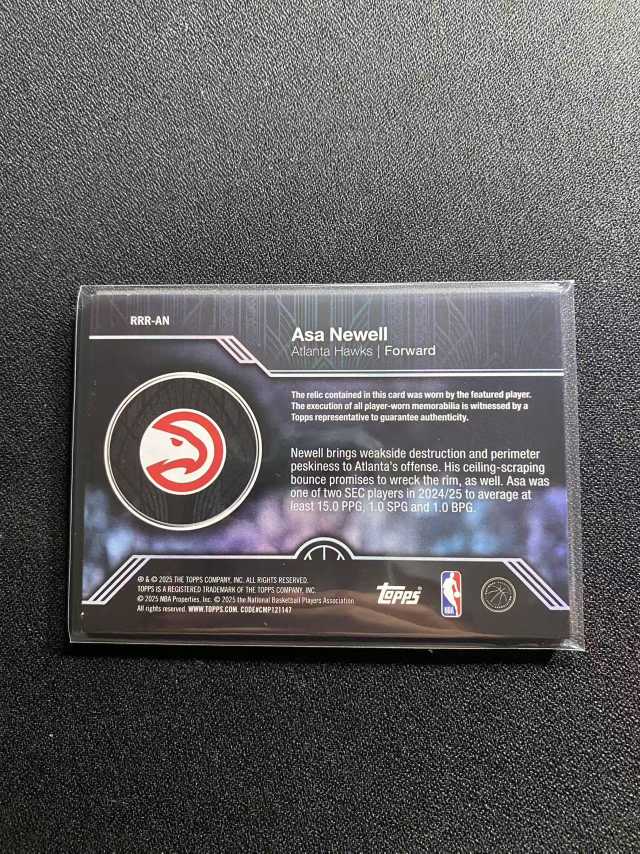 2025 Topps Topps Asa Newell RC 陈氏拍卖 NBA 元年Topps 新秀 球衣衣料 纽厄尔 老鹰 99编 凑套专收必备 吕布1114