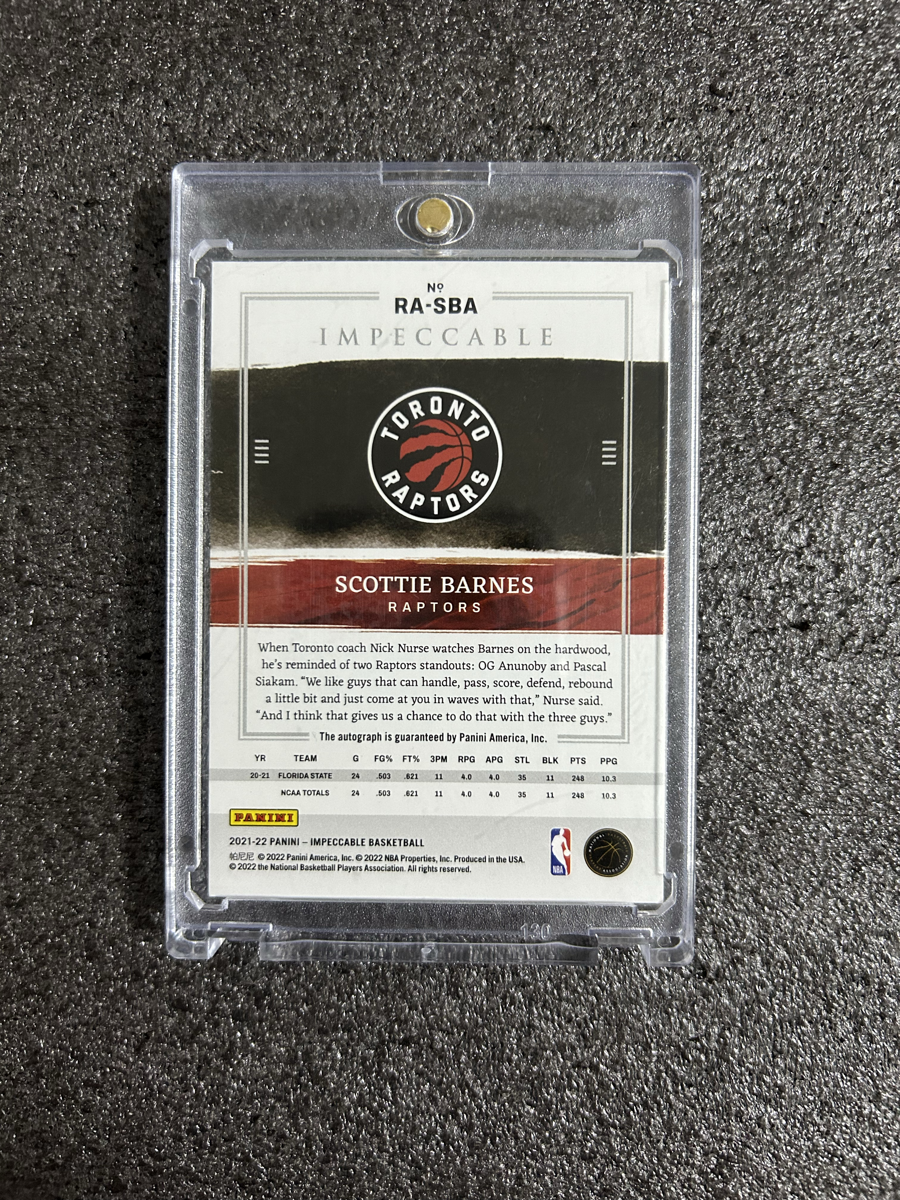 2021-22 Panini Impeccable Scottie Barnes RC 斯科蒂 巴恩斯 小真金 新秀 rookie auto 签字 卡签 99编 正新秀签 猛龙队 全明星 龙王