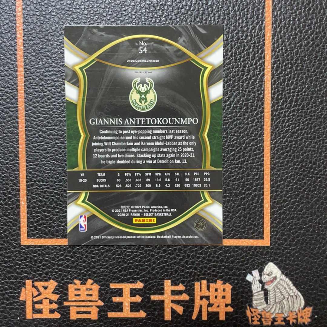 (怪兽拍卖) GSW-G09 2020-21 Panini Select Giannis Antetokounmpo 扬尼斯 阿德托昆博 字母哥 雄鹿 碎冰折