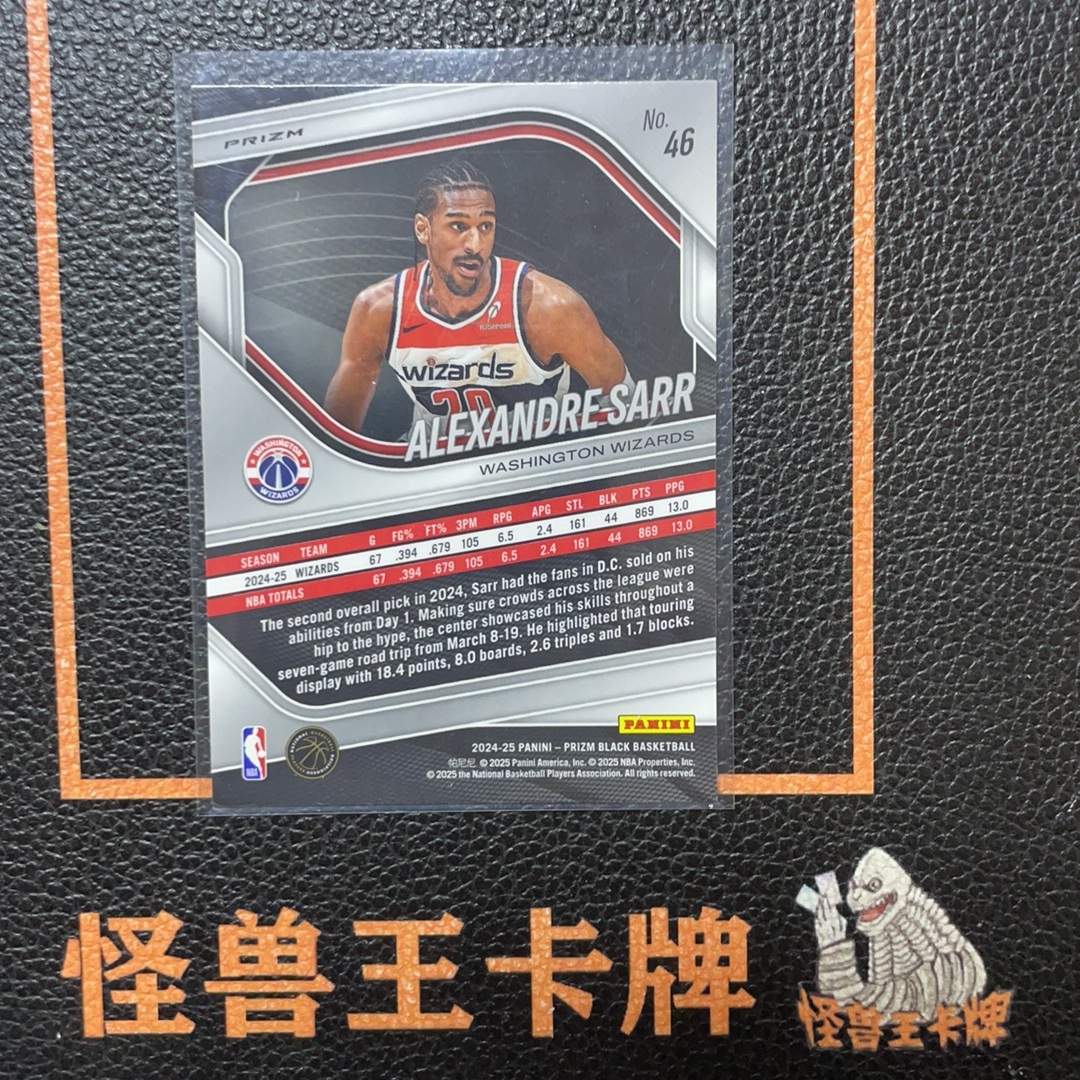 (怪兽拍卖) GSW-A86 2024-25 Panini Prizm Black Alex Sarr RC 亚历山大 萨尔 新秀 榜眼 奇才 银折