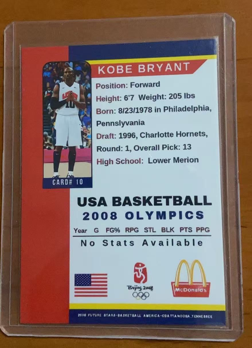 2008 America USA Basketball Kobe Bryant 科比 布莱恩特 小飞侠 黑曼巴 北京奥运会 国家队 硬通货 卡品精美 凑套必备 收藏必备