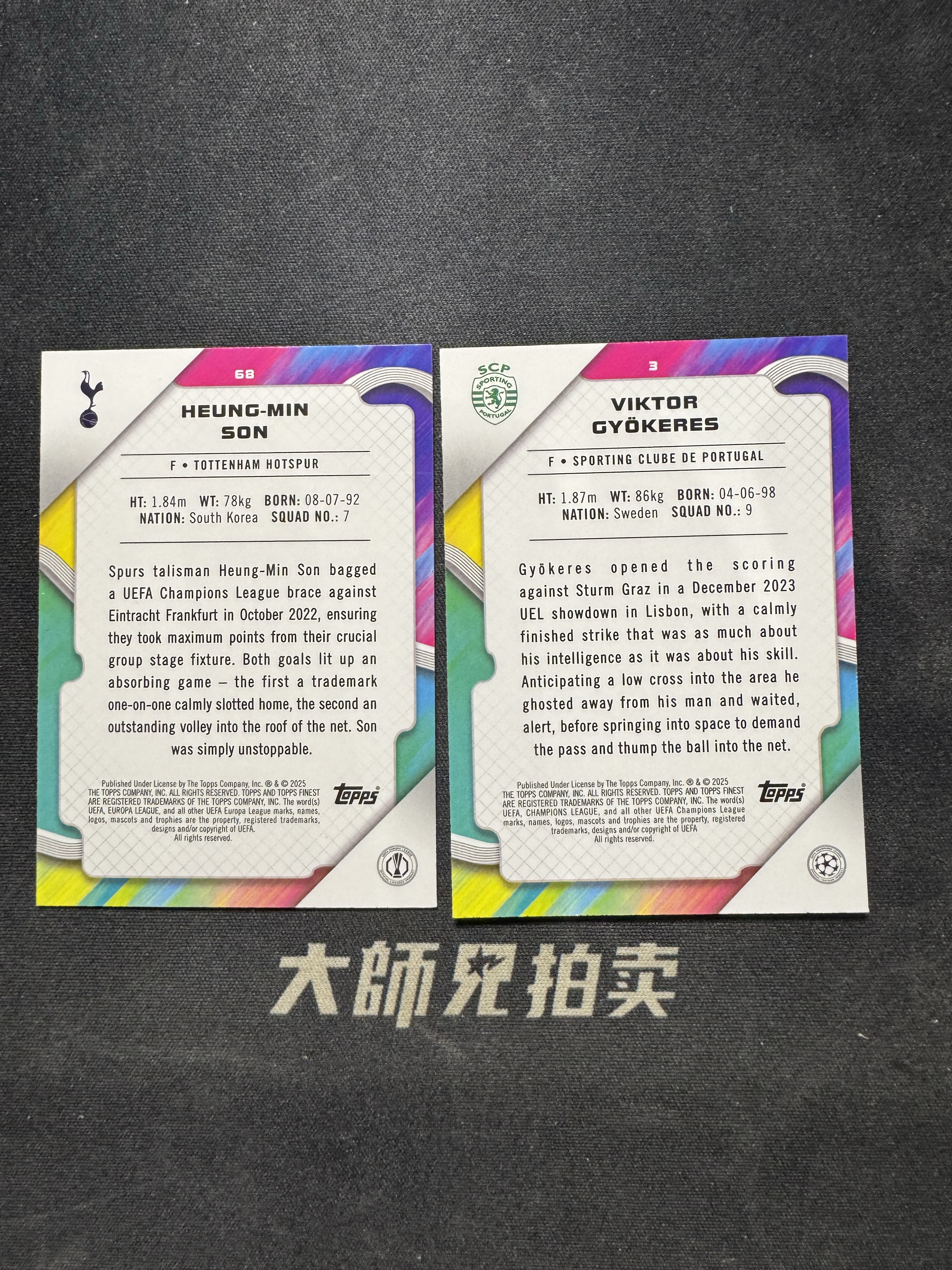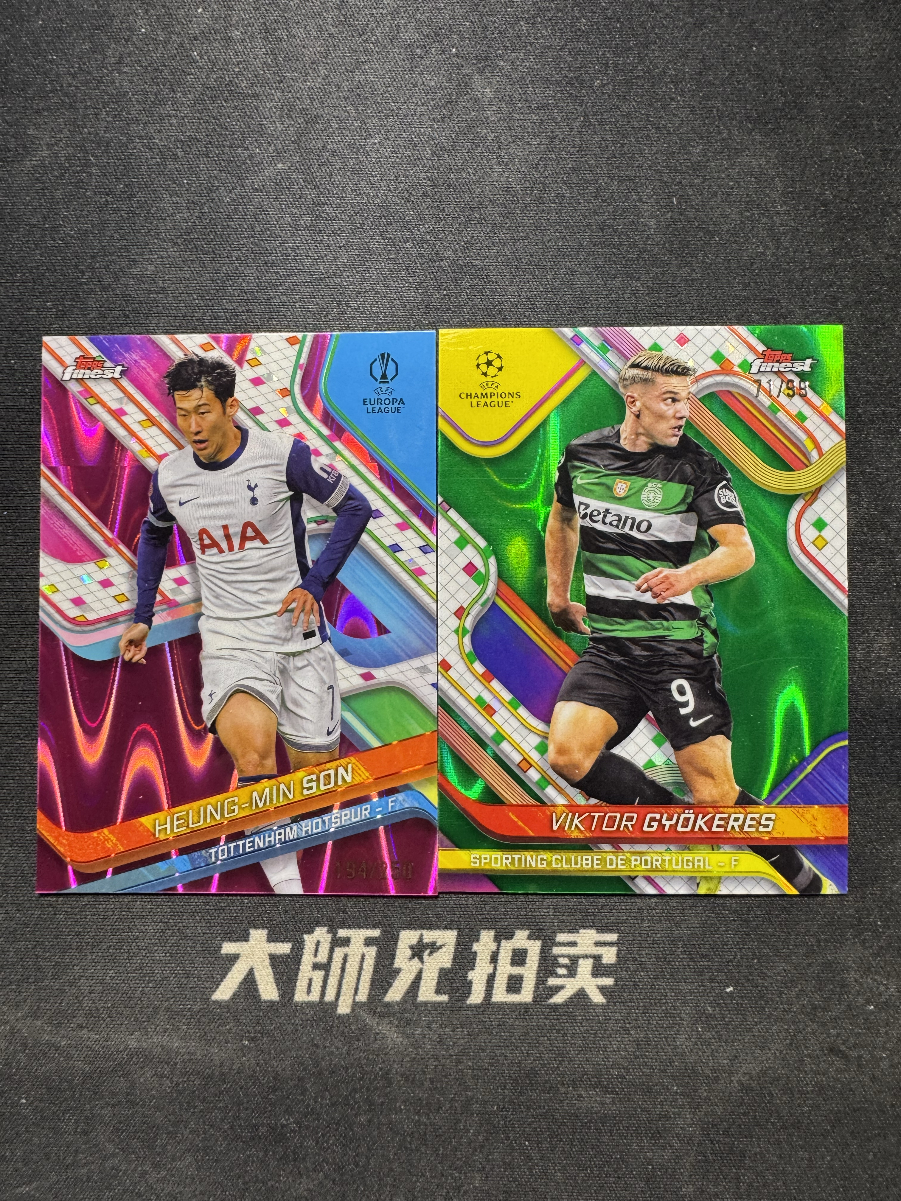 【大师兄拍卖】 2025 Topps Finest HEUNG-MIN SON 欧冠 热刺 孙兴慜 250编 粉熔岩 葡萄牙体育 哲凯赖什 99编 绿熔岩 2张 通行品 -马文-