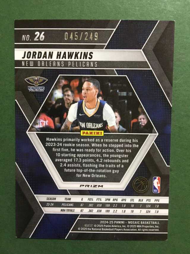 2024-25 Panini Mosaic Jordan Hawkins 马赛克 鹈鹕 乔丹 霍金斯 249编 橙马赛克折 橙折 折射 正base 次年秀 阿门 文班同届 胖虎锡安队友 卡品如图#十五