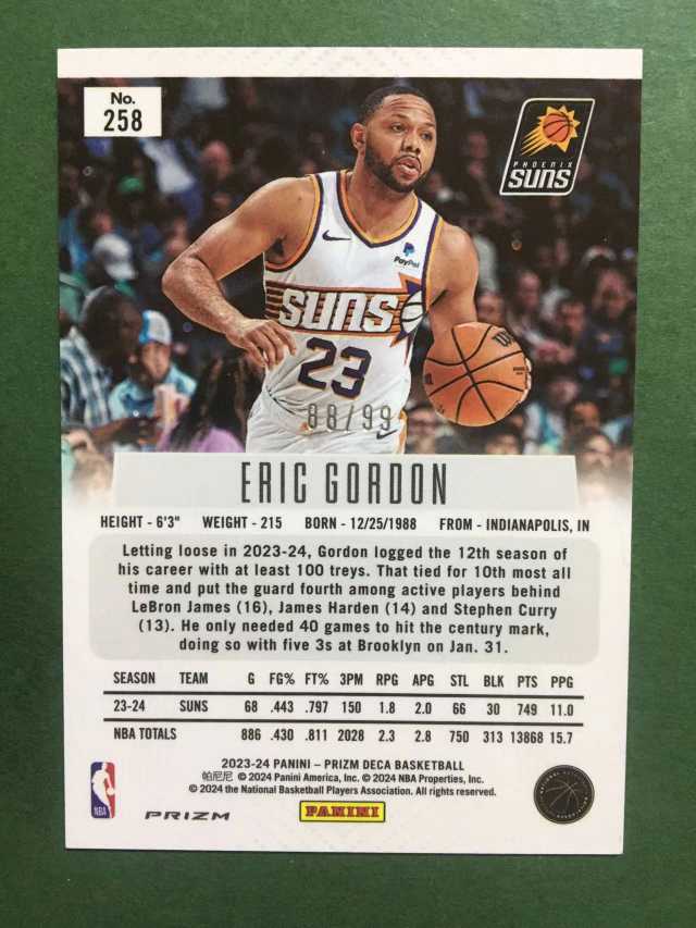 2023-24 Panini Prizm Eric Gordon pz DECA 复刻版 太阳 埃里克 戈登 圆脸登 99编 紫折 折射 base 火箭 布克 杰伦格林队友 收藏必备 卡品如图#十五
