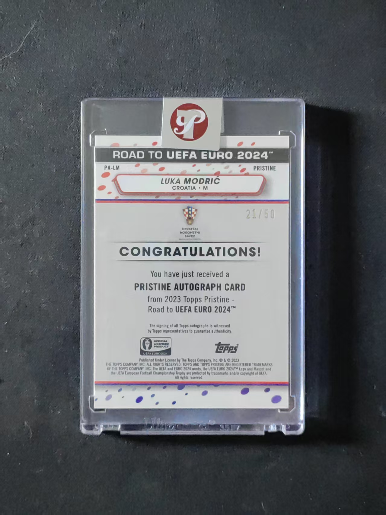 2023 Topps Pristine Luka Modric 【林林拍卖二十三】太古系列 欧洲杯 克罗地亚 莫德里奇 21/50编 金脉冲折 签字 原封砖