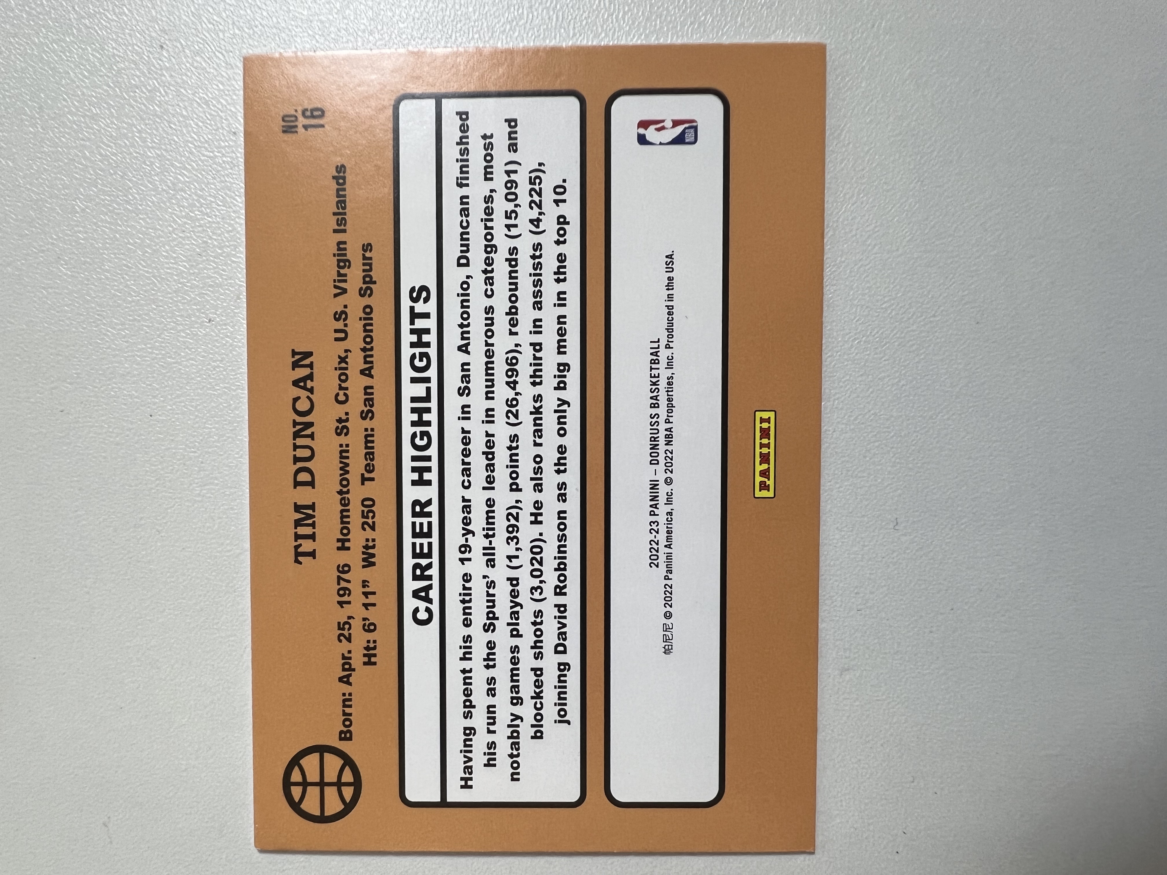 2022-23 Panini Donruss Tim Duncan 石佛 蒂姆邓肯 马刺 杜蕾斯 (QYANG-A03)收藏凑套 卡品如图 免费代拍