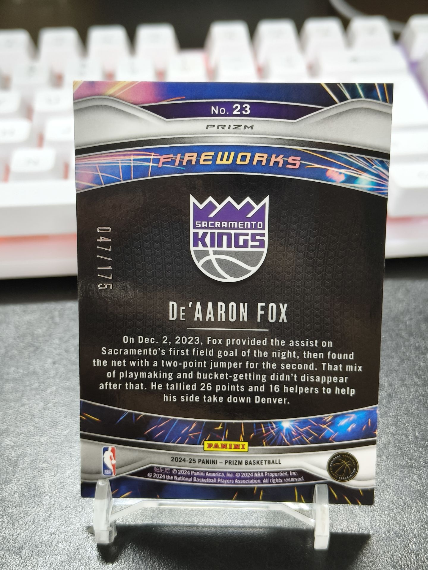 【浩行拍卖 截标预付82%】2024-25 panini prizm deaaron fox 国王 达龙 福克斯 小狐狸 蓝波纹折 折射 烟花特卡 47/175编 瑕疵看图 专收必备「城府539」1107K01劉