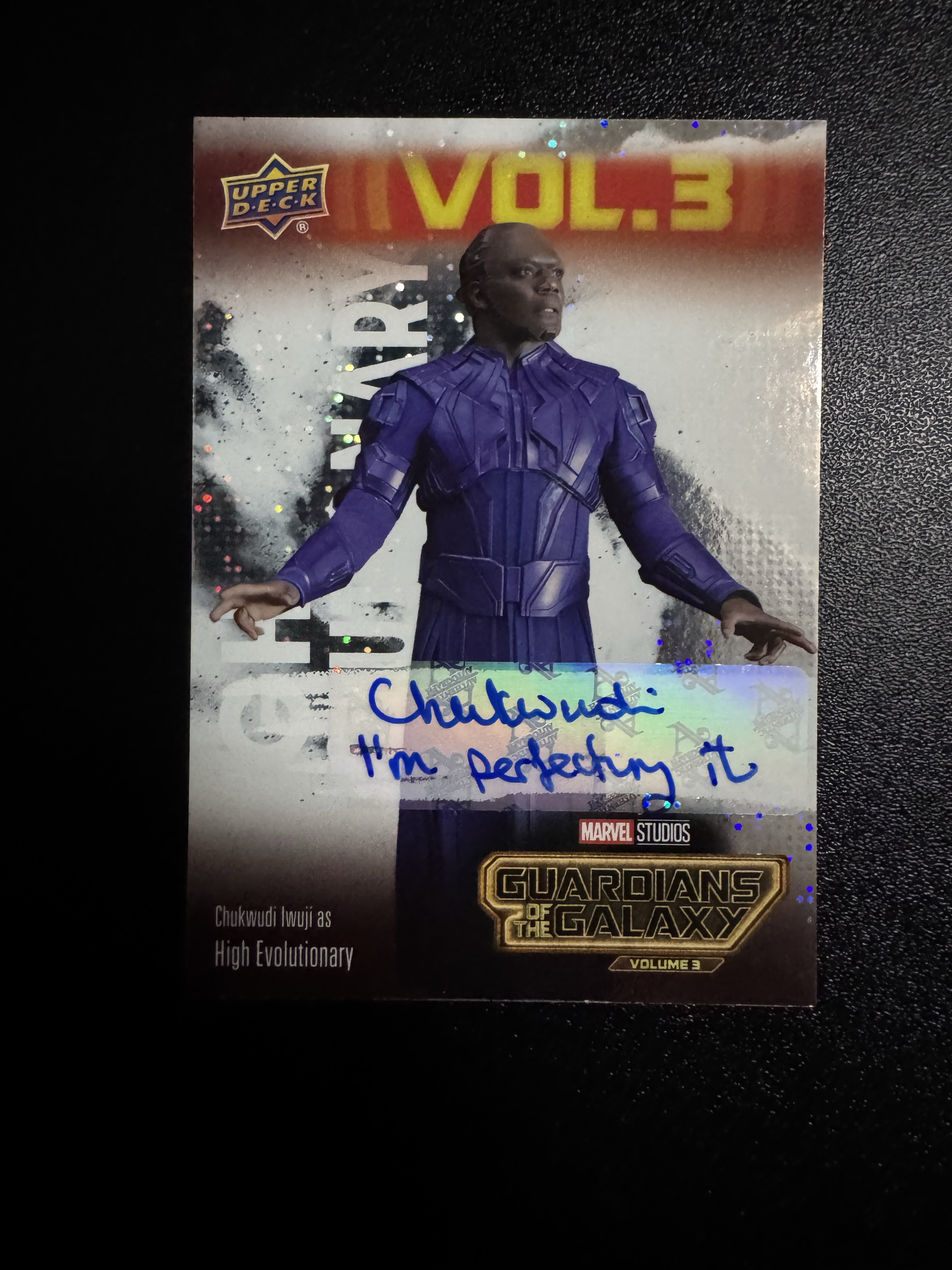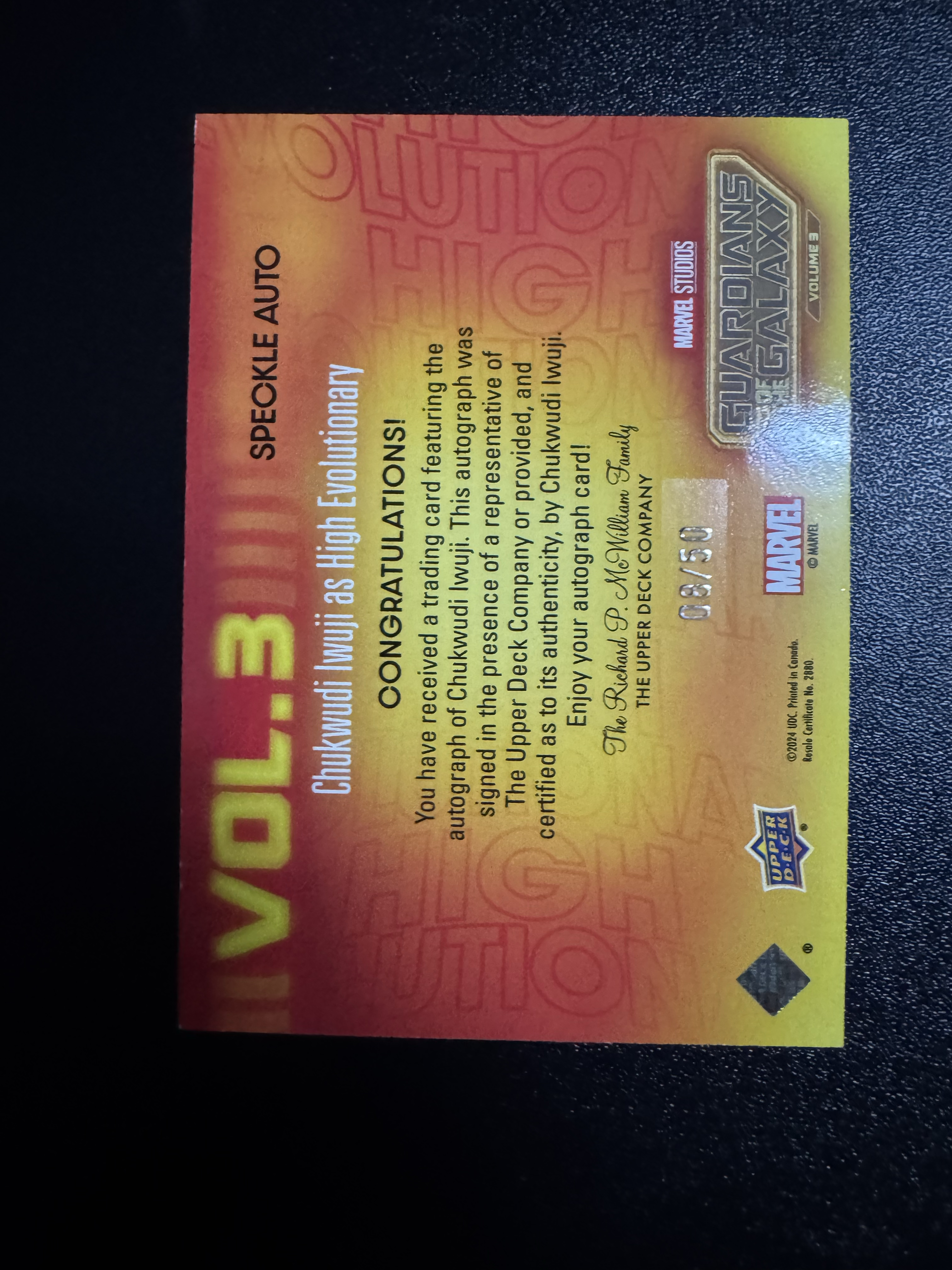 2023 Upper Deck 银河护卫队3 Chukwudi Iwuji 楚克武迪·武吉 签字 铭文签 至高进化 08/50编 影视卡 铭文签 大比例 稀有 卡品如图