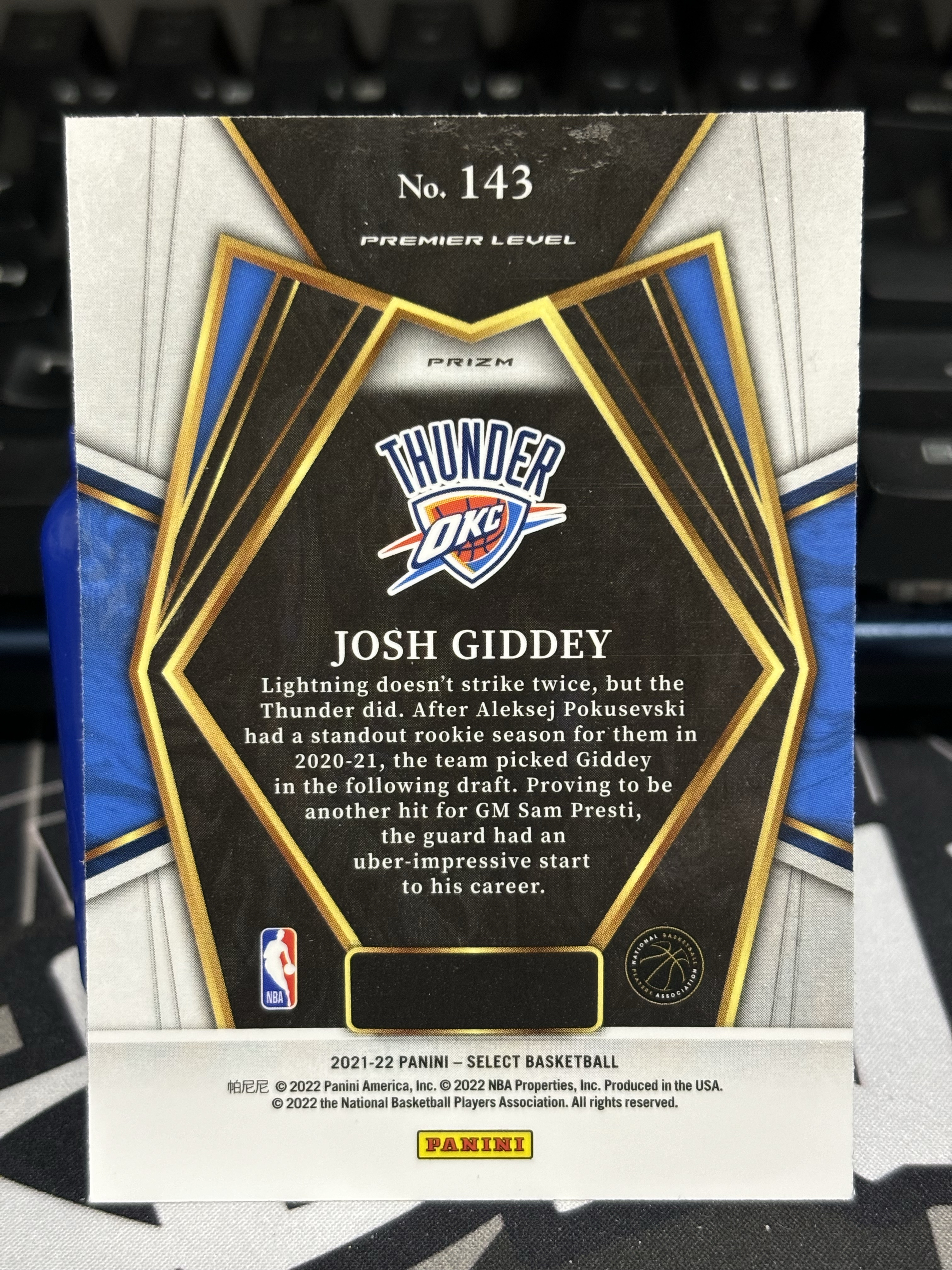 2021-22 Panini Select Josh Giddey RC SE 雷霆 约什 吉迪 新秀 一级三色折正base 本赛季表现炸裂 谢伊 吉尔杰斯 亚历山大前队友 不保卡品