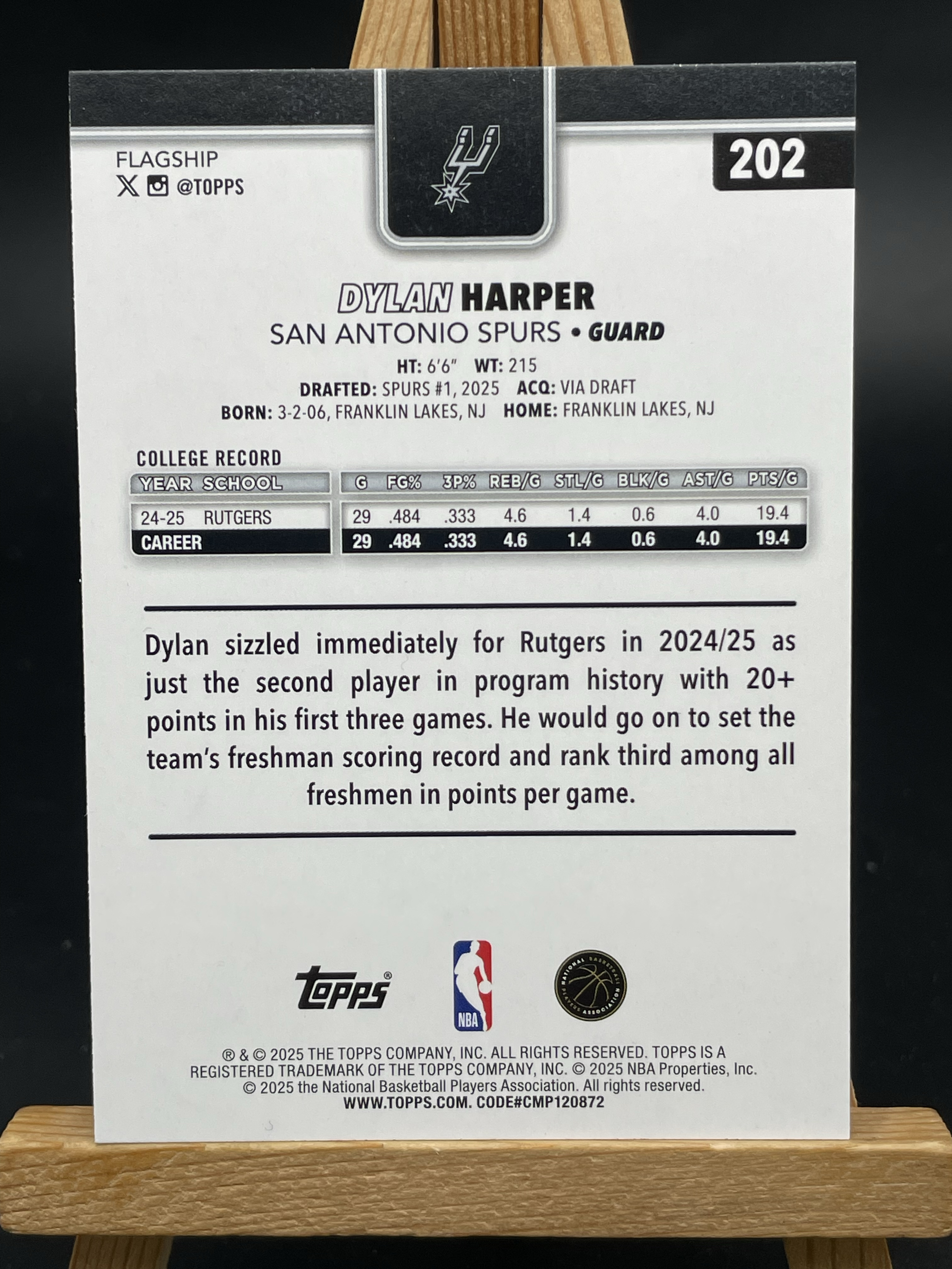 2025 Topps Flagship Dylan Harper RC 【小哈拍卖-默契07】迪伦哈珀 新秀 格子折 base 潜力新秀 投资收藏