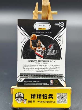 2.参拍:卡品墨迹如图所示(厚卡异形卡等都有正常白边白角,部分系列会有特殊瑕疵),请认真看图后再谨慎出价。不接受任何艺术家买卡,如拍到卡后有任何艺术家行为(包括但不限于在通行卡品里挑瑕疵索要赔偿或退卡等)一律拉黑投诉处理。所卖卡未经描述均为通行品,可能会有细微瑕疵;打包标小卡可能会有不同程度的瑕疵,不保障卡品;评级卡壳和原封砖的磨损不包含在卡品范围内;多张上拍卡品通行的同款卡片随机发货。竞拍前可以私聊要细节图,成交后再以有瑕疵、勿拍等理由退卡的一律拒绝,介意者请勿参拍!参拍即视为已读同意!