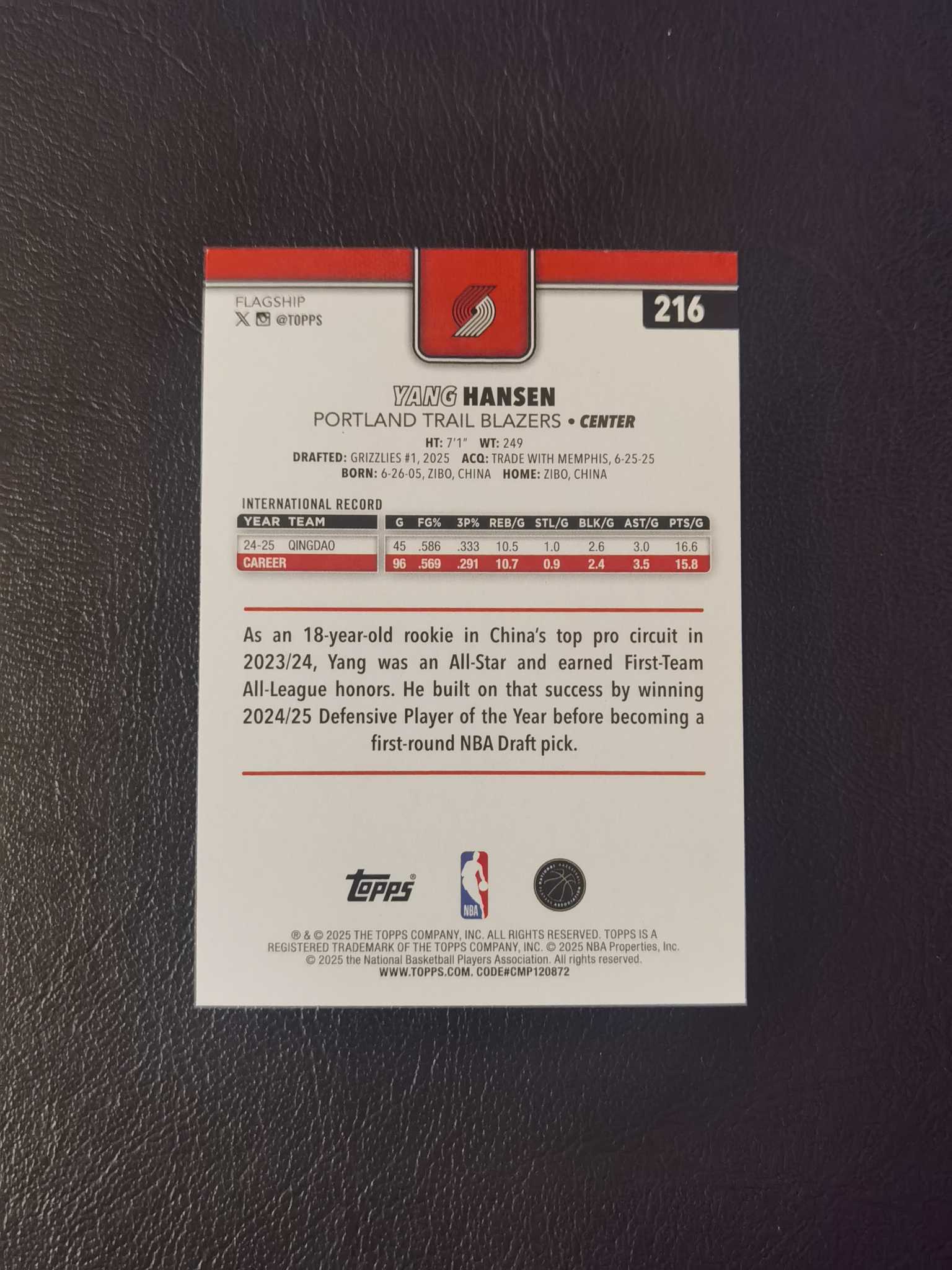 2025 Topps Flagship 杨瀚森 RC 新秀 开拓者潜力新星【ycy Mt总】