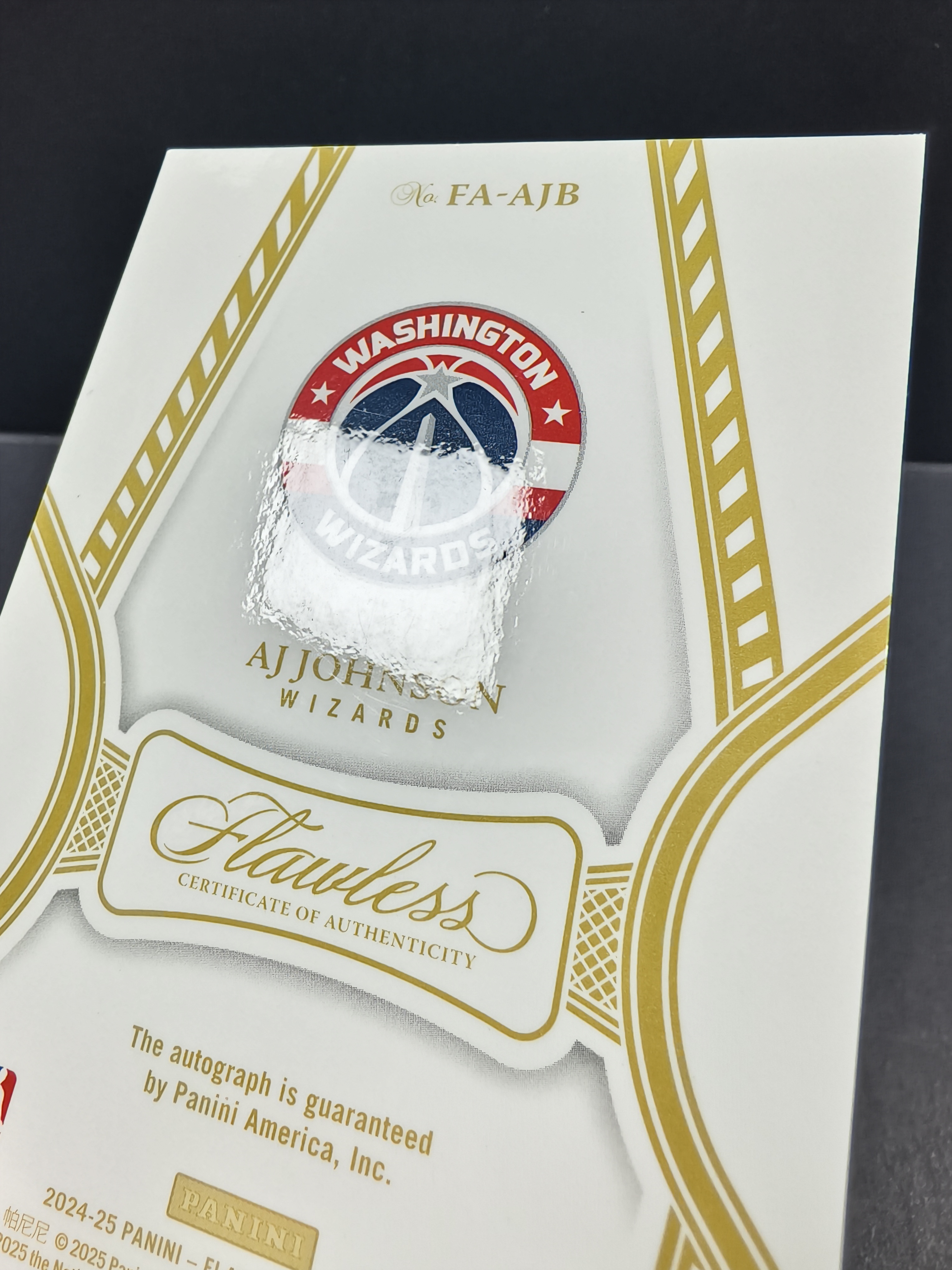 2024-25 Panini Flawless AJ Johnson AJ约翰逊 手提高端系列 全球限量发售1/25编 首编 稀有珍贵 新秀RC 铂金版 签字 卡签 颜值极佳 性价比高 必备收藏 奇才