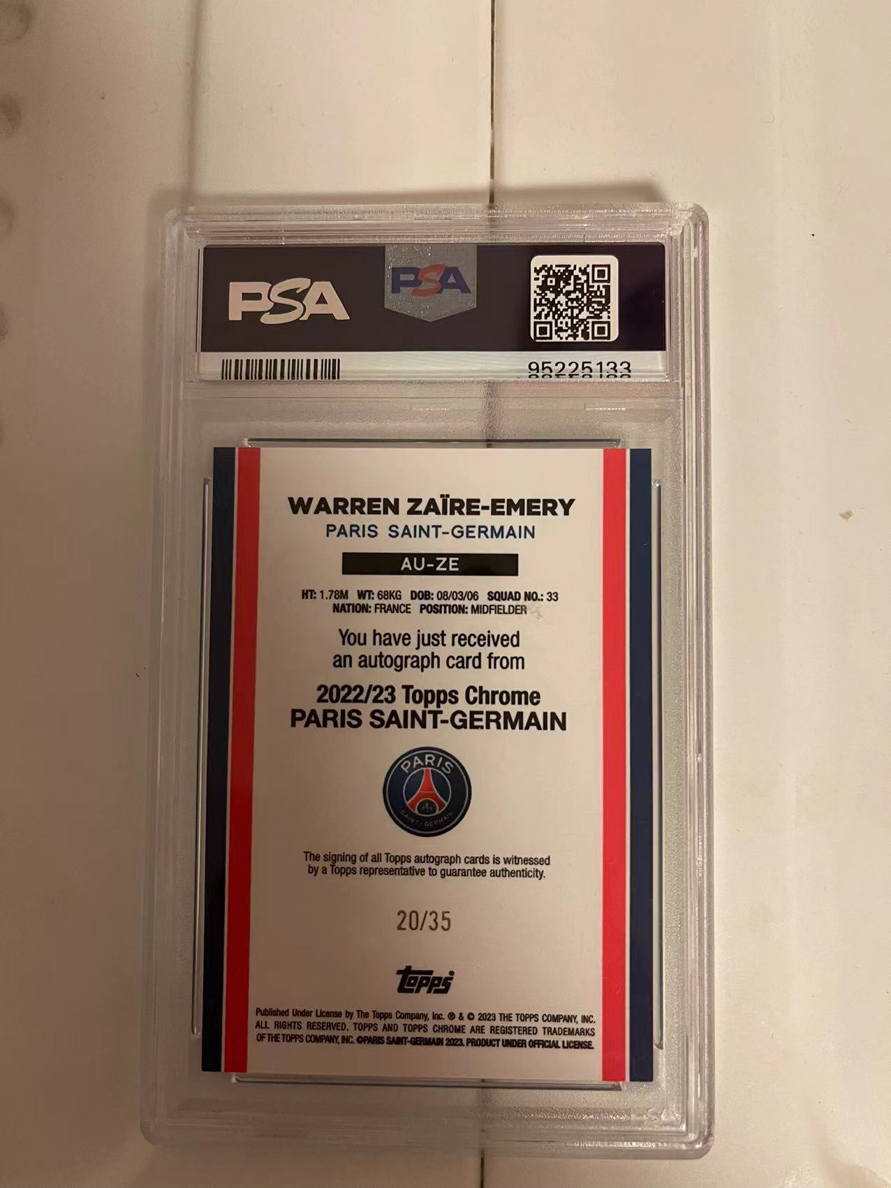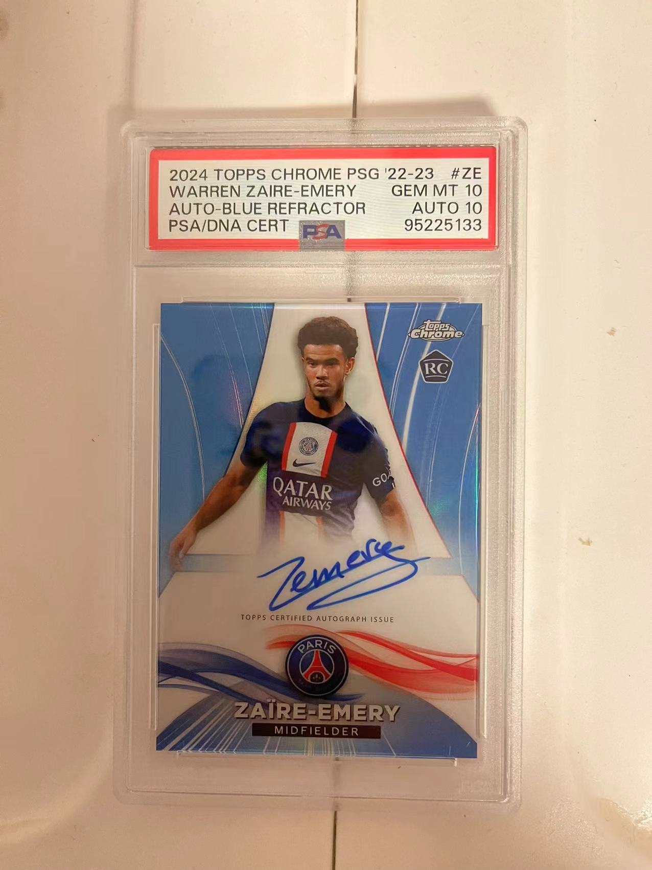 2024 Topps Chrome Warren Zaïre-Emery RC TC 沃伦 扎伊尔-埃梅里 巴黎 新秀 RC /35编 正蓝折 签字 卡签 PSA10 PSA双10分 太孙 姆巴佩