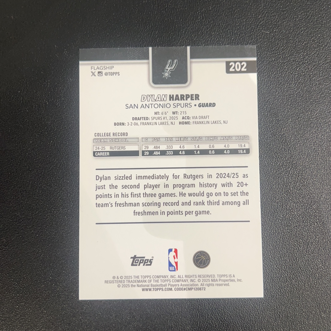 【卡卡星拍卖】 2025-26 Topps Flagship Dylan Harper RC 马刺 新秀 迪伦 哈珀 未来可期 卡品如图 roy