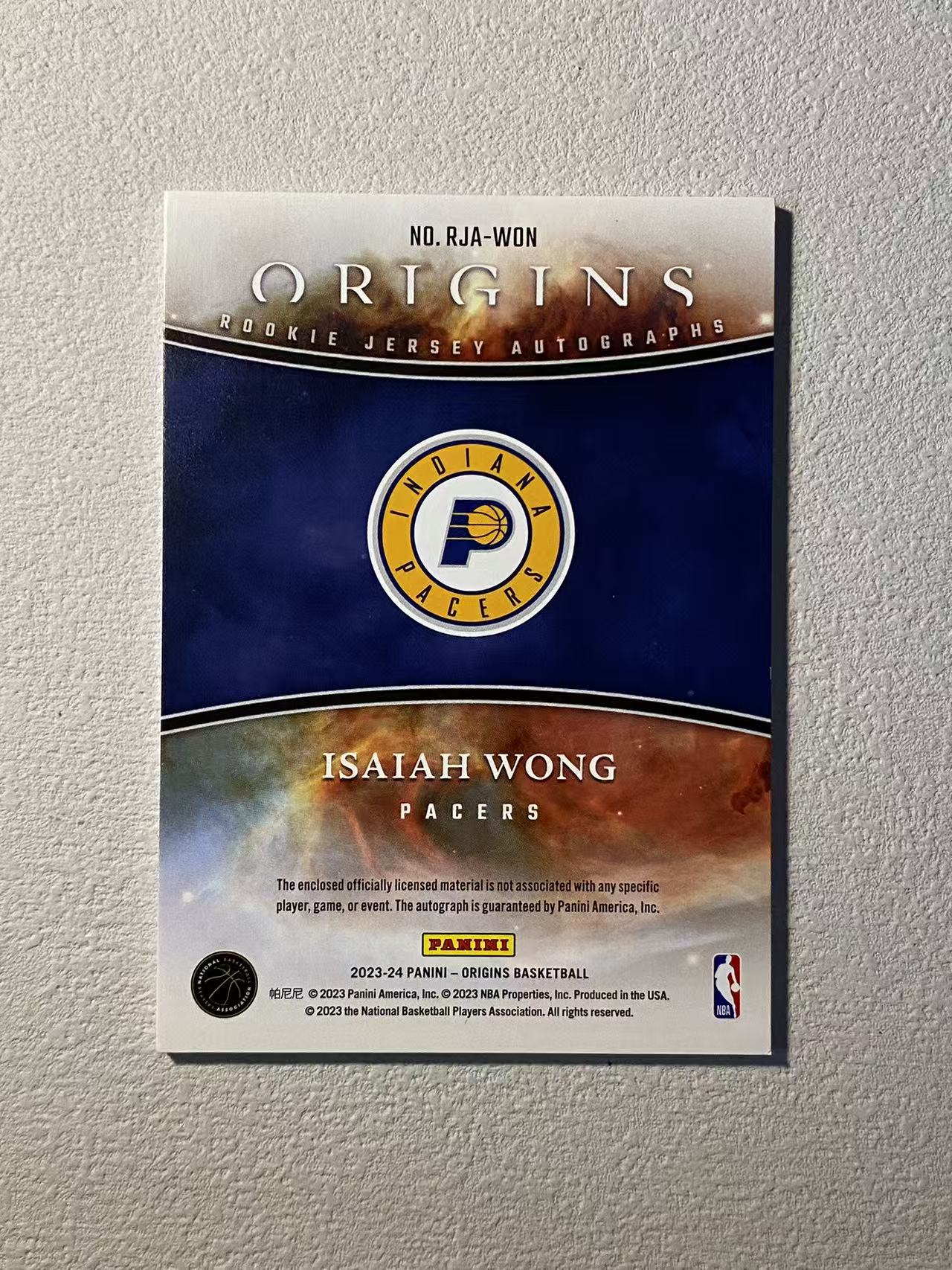 2023-24 Panini Origins Isaiah Wong RC 起源 步行者 新秀rc 以赛亚 王 rja 签字 球衣 物料 收藏必备