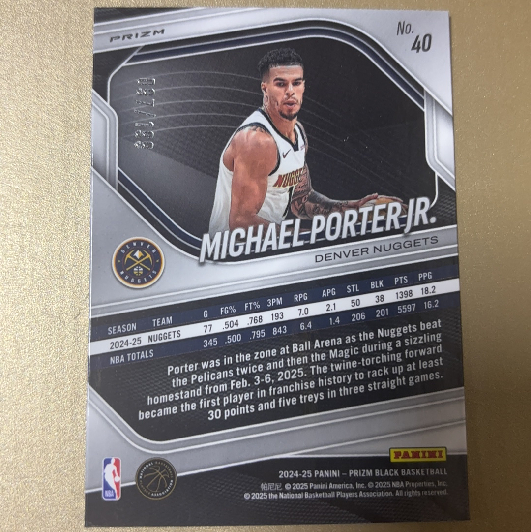 2024-25 Panini prizm black Michael Porter Jr. 小迈克尔 波特 prizm 折射 蓝折 199编 掘金