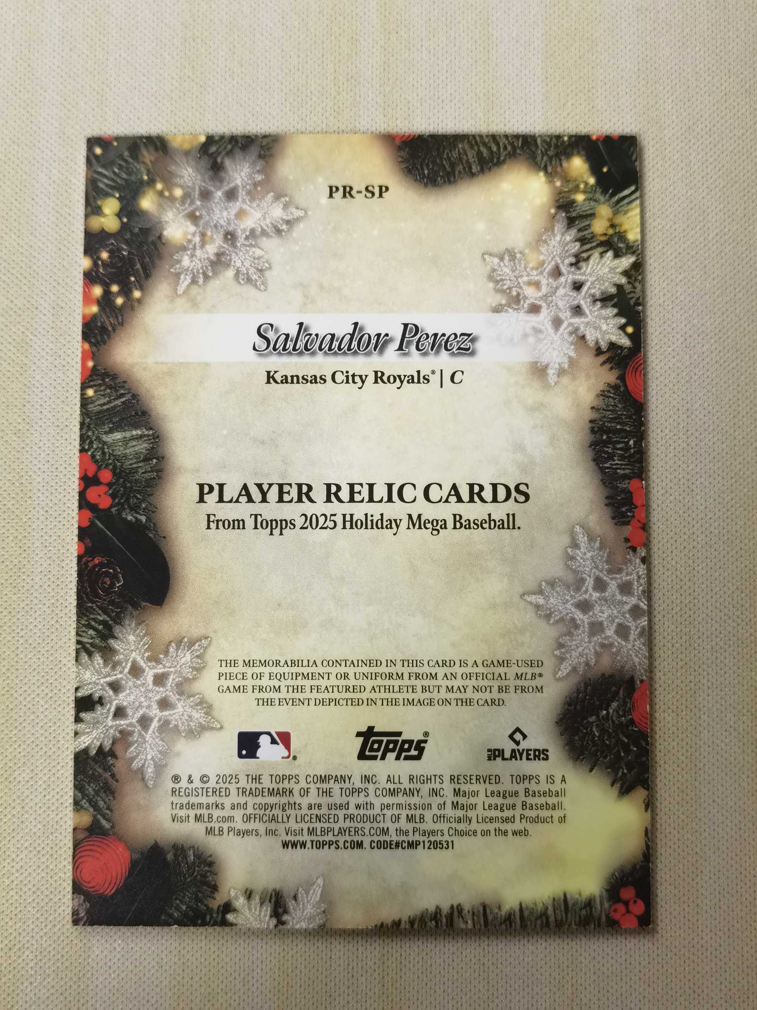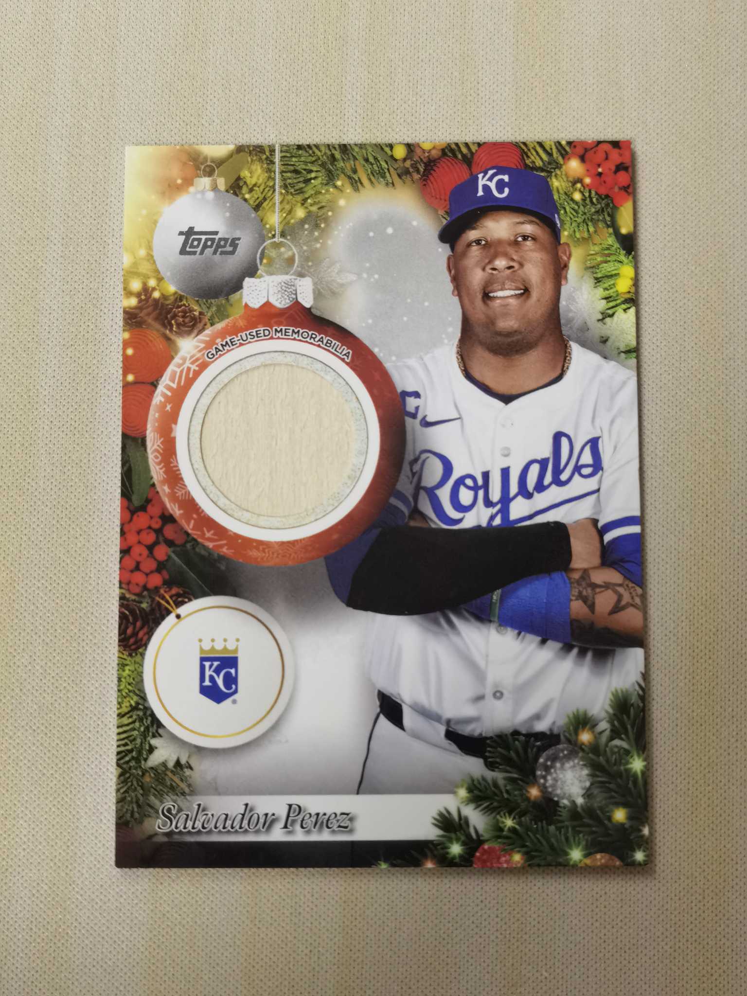 2025 Topps Happy Holidays Salvador Perez 萨尔瓦多 佩雷兹!皇家大热现役捕手!mega假日盒GU落场版球棍切割!数量稀少,eBay价高,可搏psa高分!长期看涨!