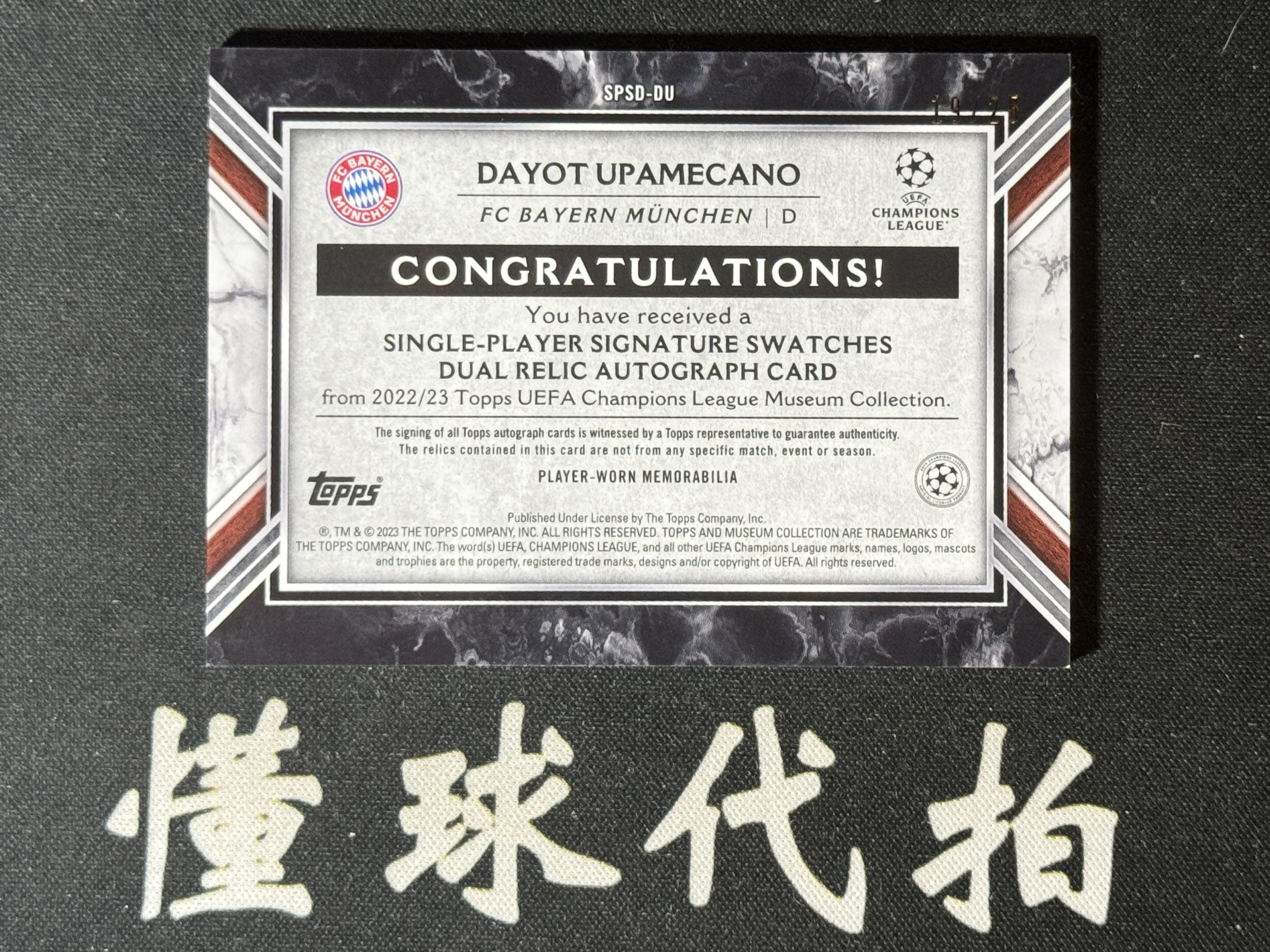 【懂球代拍】2022-23 topps 欧冠博物馆 限量 25编 DAYOT UPAMECANO于帕梅卡诺 拜仁 法国 暴力三色球衣patch 签字折射 值得收藏 DQ076C 002