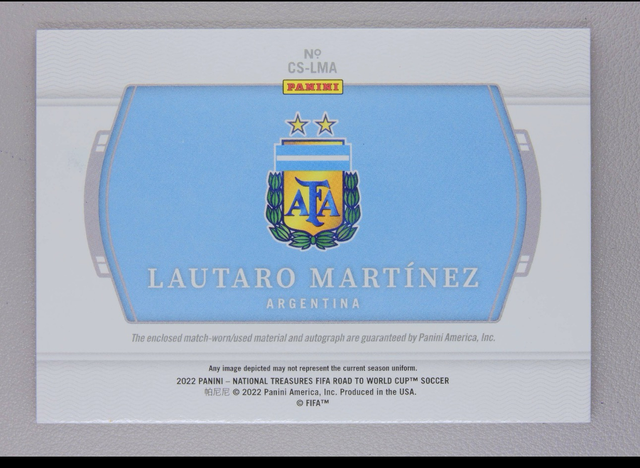 2022 Panini National Treasures Lautaro Martinez 劳塔罗 马丁内斯 阿根廷 大窗 球衣 物料 签字 49编 世界杯 国宝 阿煜