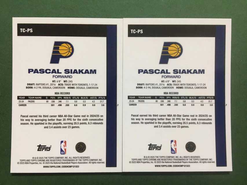 2025 Topps Chrome Pascal Siakam TC 元年 步行者 帕斯卡尔 西亚卡姆 mojo折 迷宫折 折射 base 哈利伯顿队友 总冠军 猛龙 2张lot 卡品如图#纪