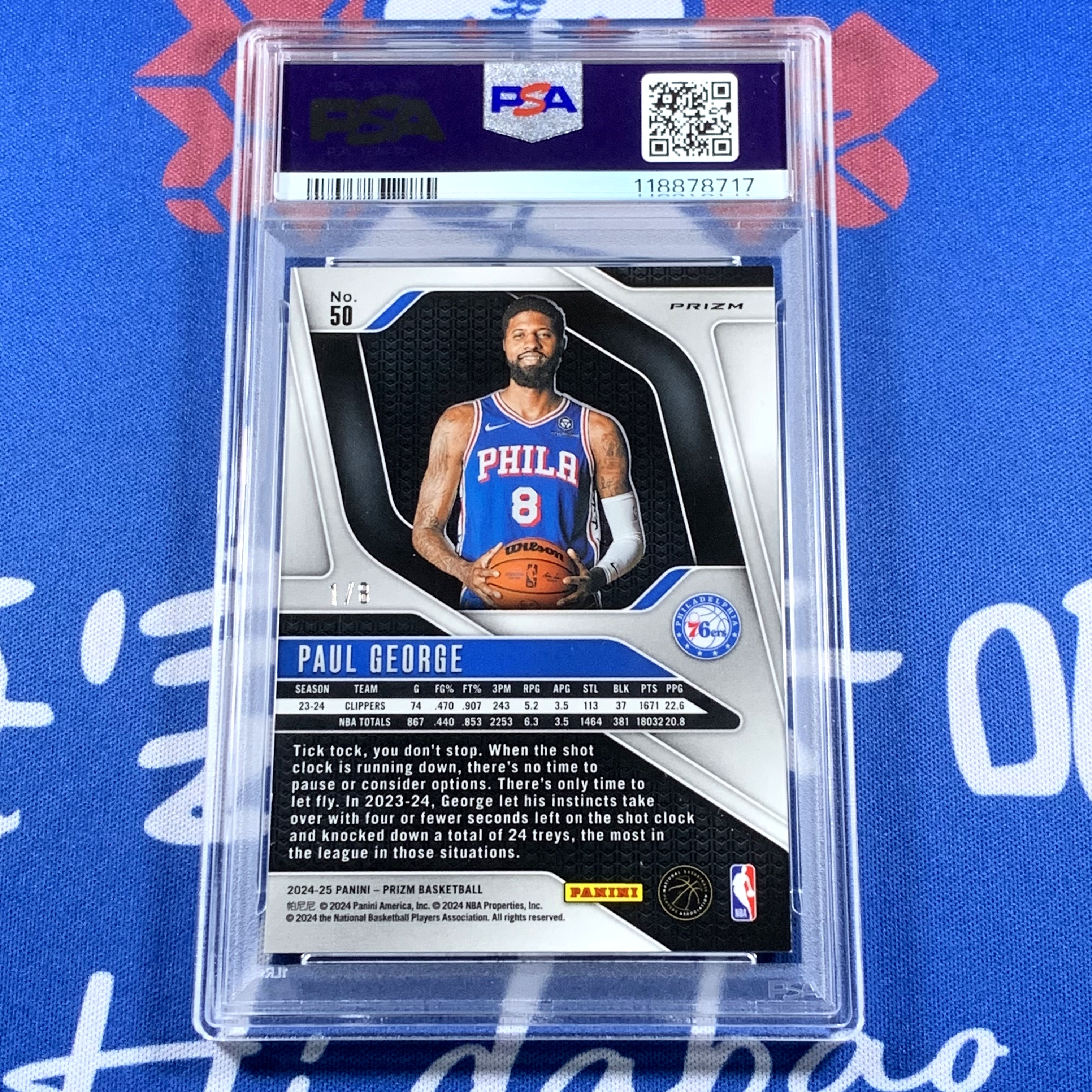 2024-25 Panini Prizm Paul George 【海宝】末年pz 76人 泡椒 保罗乔治 1/8编 首编 超低编 梅花折 折射卡 PSA9分 彩虹凑套 收藏必备【Q4】