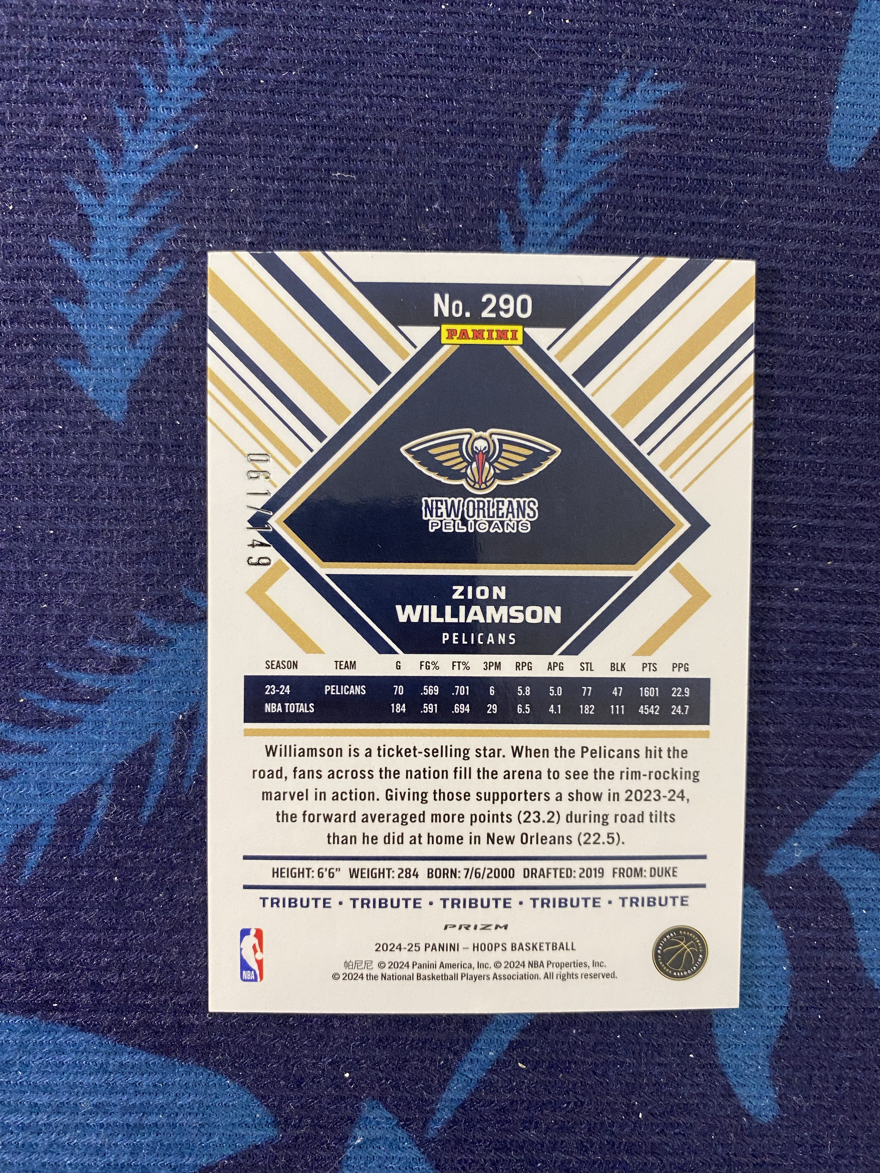 【不累计】2024-25 Panini Hoops 鹈鹕 锡安 威廉姆斯 061/149编 青绿折射 复古base 胖虎 Zion Williamson
