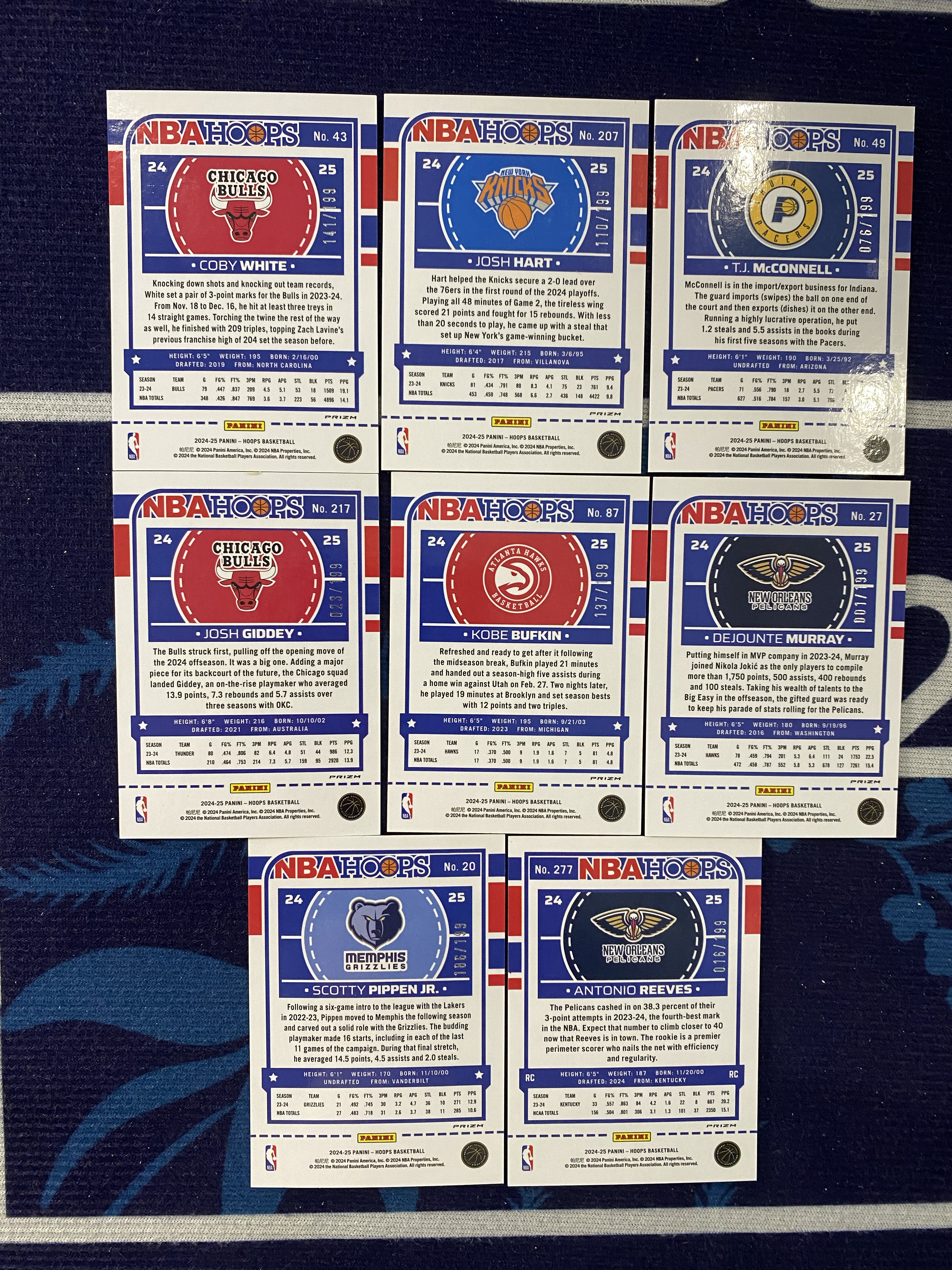 【不累计】2024-25 Panini Hoops 8张 /199编 橙折射 base 打包 科比怀特 德章泰穆雷 科比巴夫金 约什吉迪 安东尼奥里夫斯 皮蓬 约什哈特 麦康奈尔