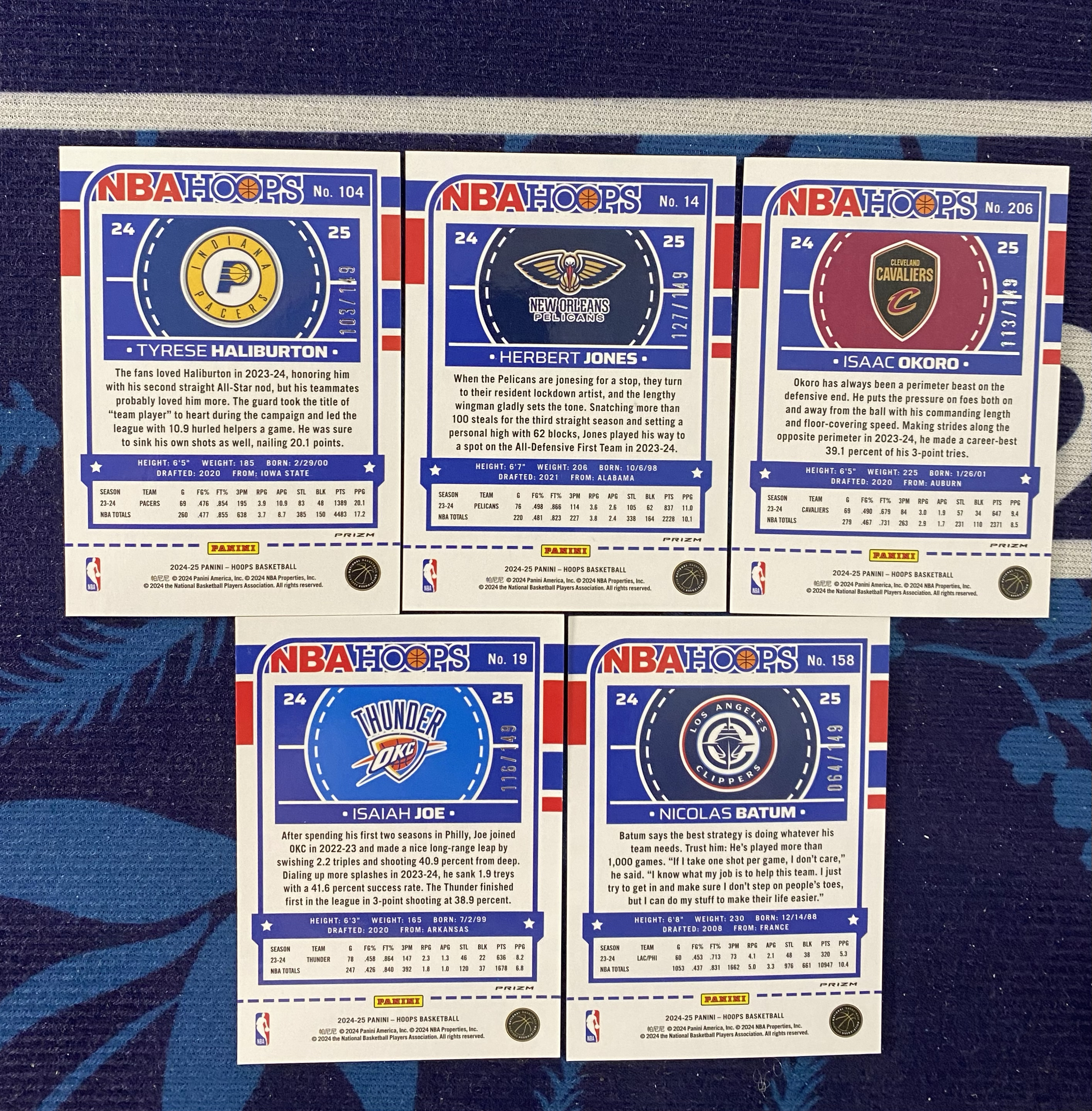 【不累计】2024-25 Panini Hoops 5张 /149编 青绿折射 base 打包 哈里伯顿 赫伯特琼斯 奥科罗 以赛亚乔 巴图姆